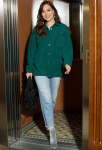 Джемпер выполнен из трикотажа, оригинального по фактуре и очень мягкого и приятного на ощупь. У джемпера полуприлегающий силуэт, чуть спущено плечо,не очень сильно обтягивающий рукав на манжете ,цельнокроенный ворот стойка,не сдавливающий шею ,достаточная длина, чтобы можно было носить с юбками и брюками не заправляя.