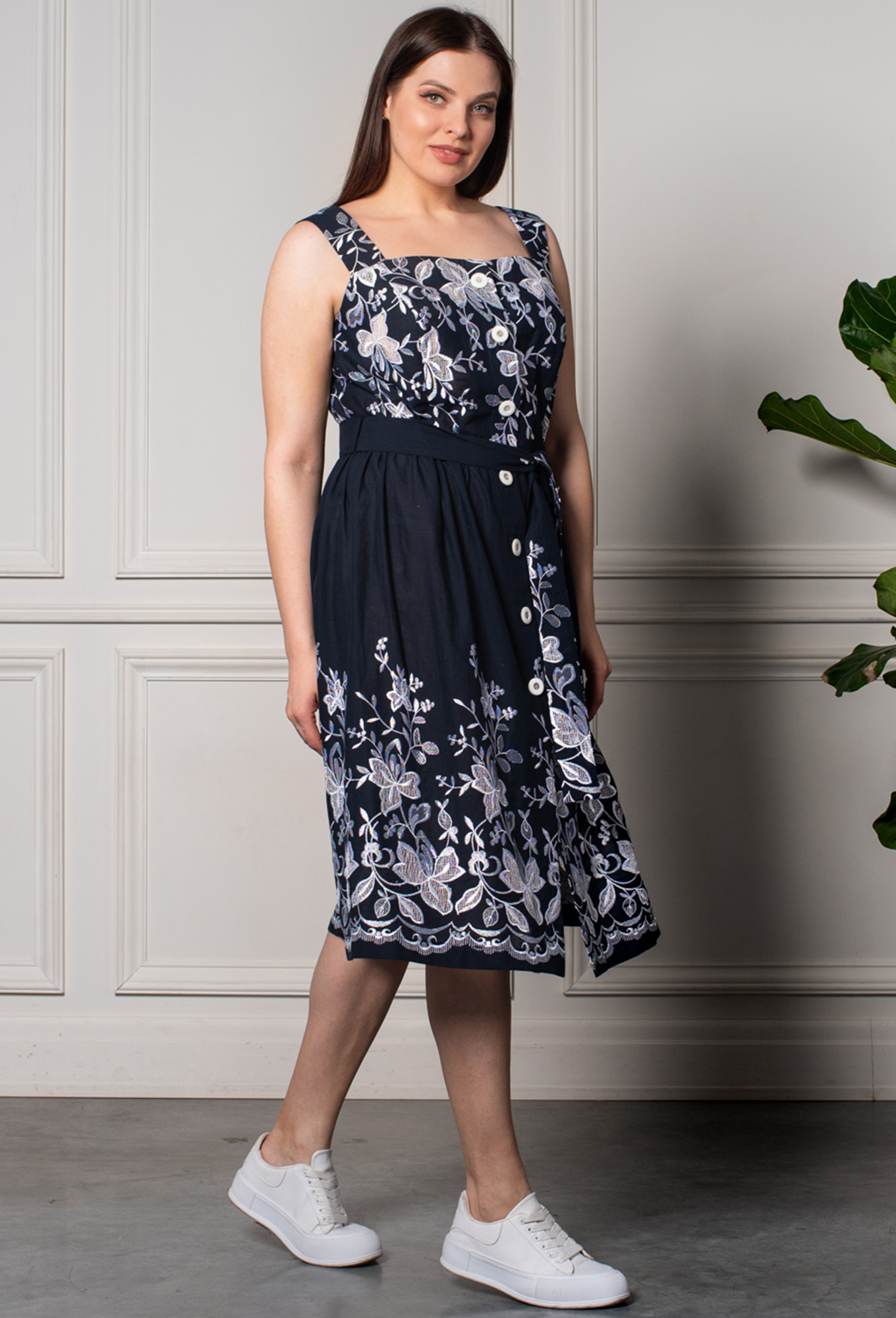 Легкий сарафан на лето из натуральной ткани. Низ сарафана украшен вышивкой.