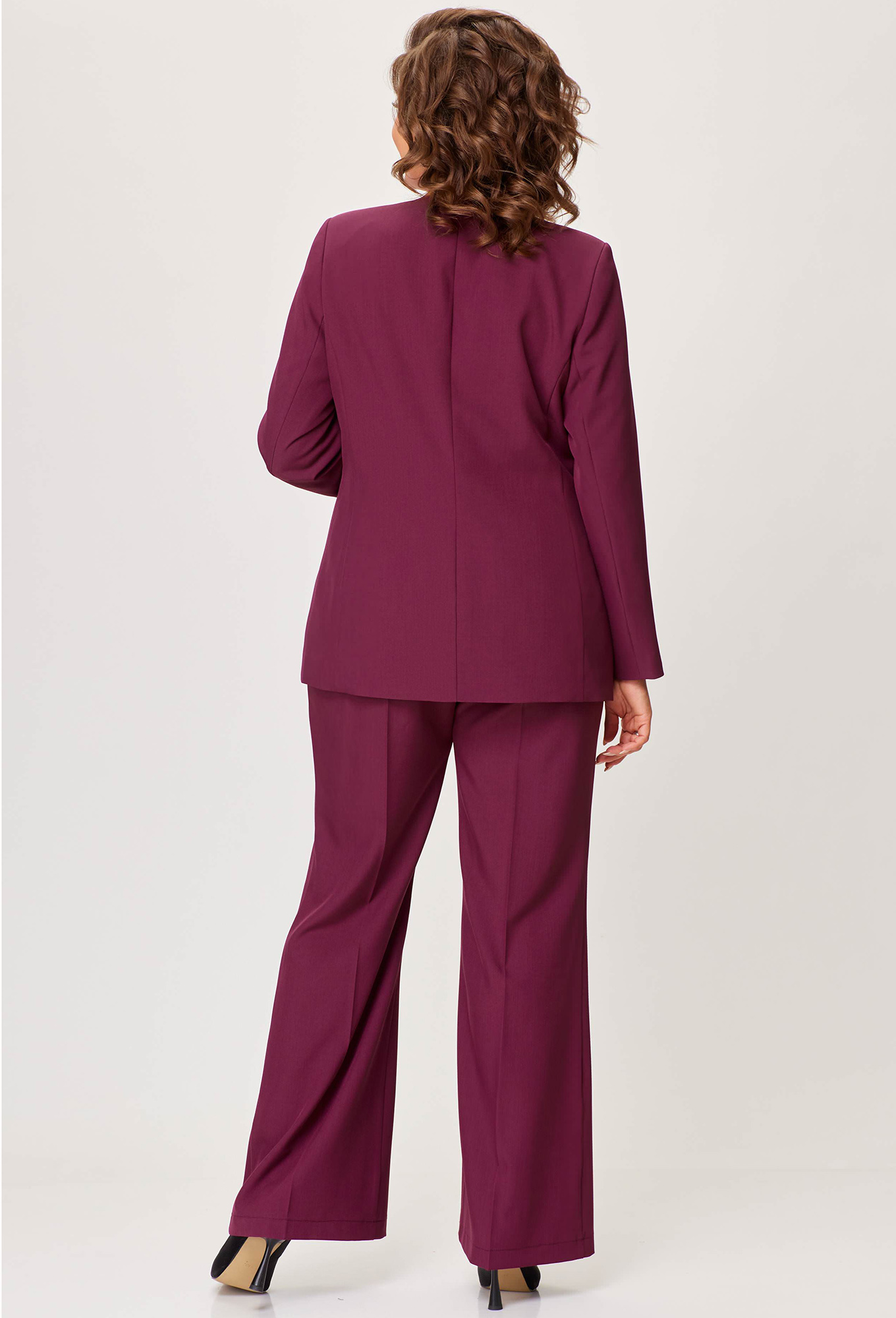 Костюм состоящий из жакета и брюк выполнен из однотонной ткани, в качестве отделки использована ткань с атласным эффектом. Жакет на подкладке.