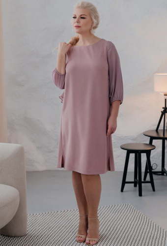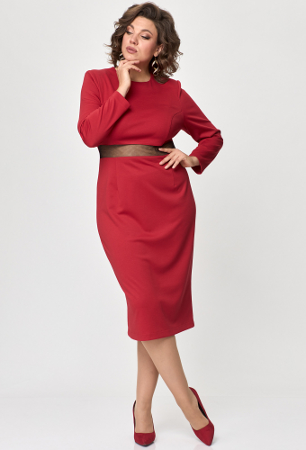 Платье прилегающего силуэта, длиной за колено выполнено из плотного однотонного трикотажного полотна, в качестве отделки использовано трикотажное полотно “сетка“.