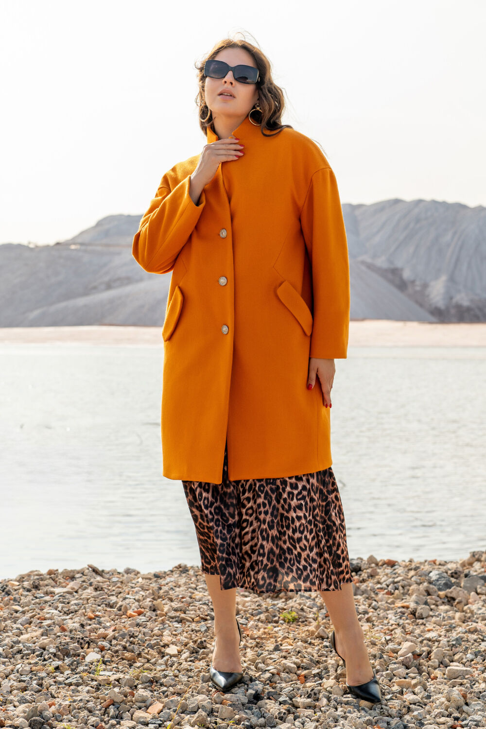 Пальто женское современного покроя, на подкладке, с центральной бортовой застёжкой  на три петли и металлические  пуговицы, с пиджачным воротником. На полочках обработаны карманы с клаанами и фигурные подрезы. Спинка со средним швом и фигурными подрезами. пальто демисезонное свободного покроя. очень современное и комфортное для модниц.