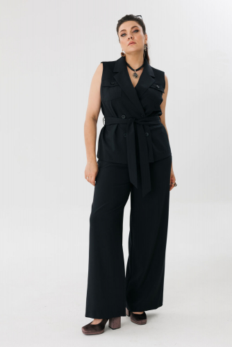 На модели в брюках цвета «акулы» жилет 1502.1, классическая рубашка 1203.1, теплый жакет 1469 и пальто 1495.