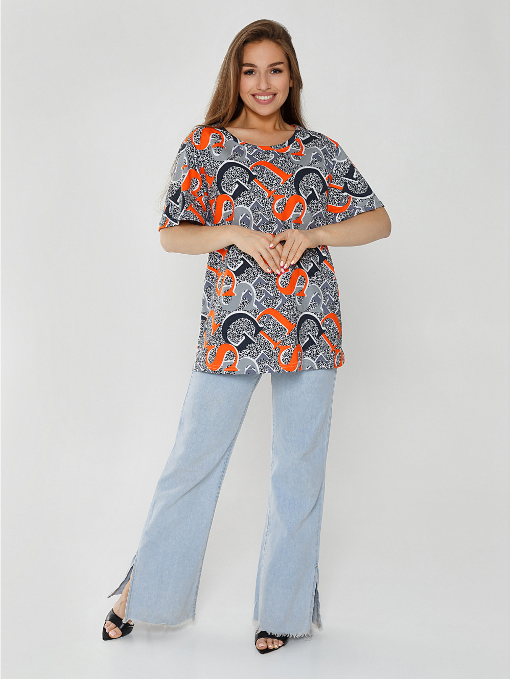 Представляем Вам нашу футболку АННУШКА  для женщин плюс, изготовленную из яркой купонной ткани.