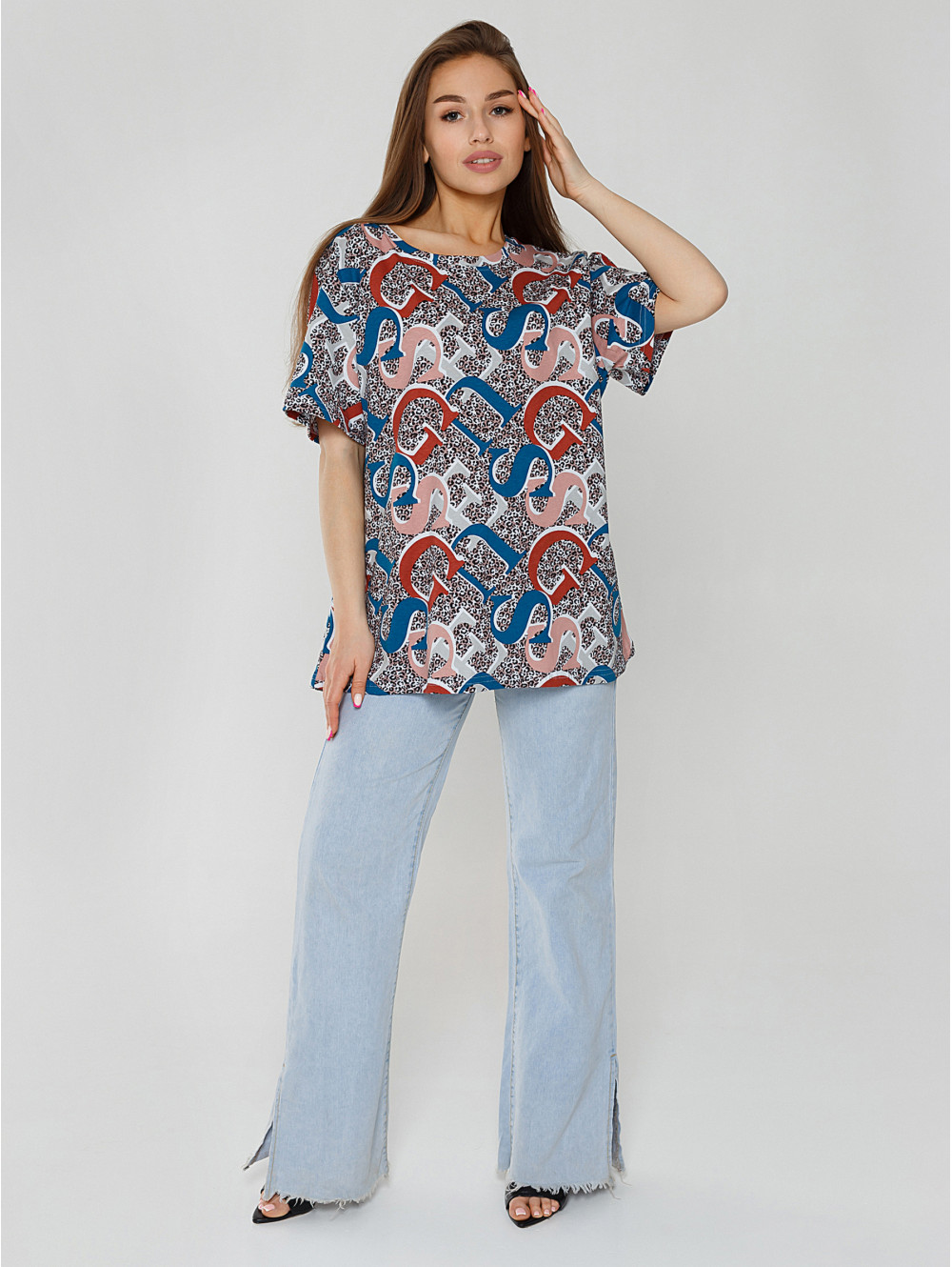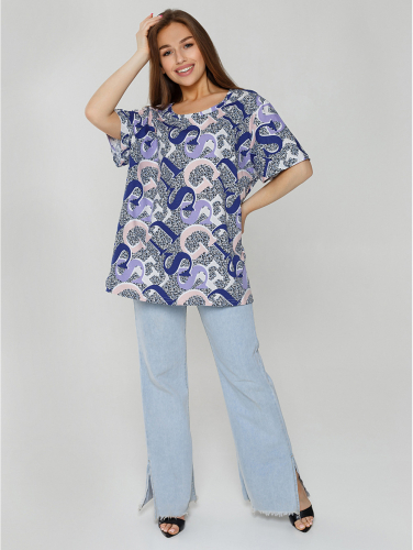 Представляем Вам нашу футболку АННУШКА  для женщин плюс, изготовленную из яркой купонной ткани.