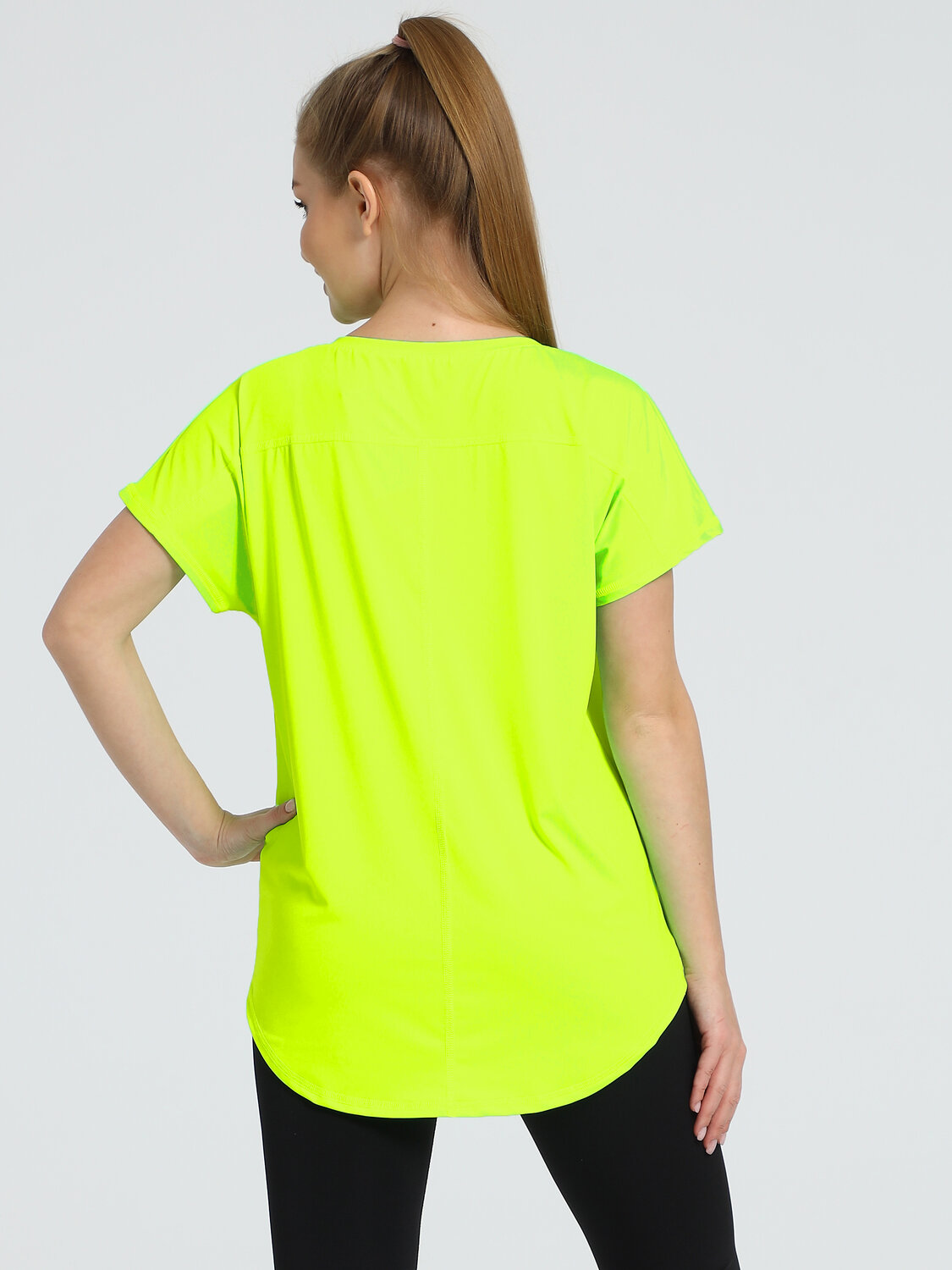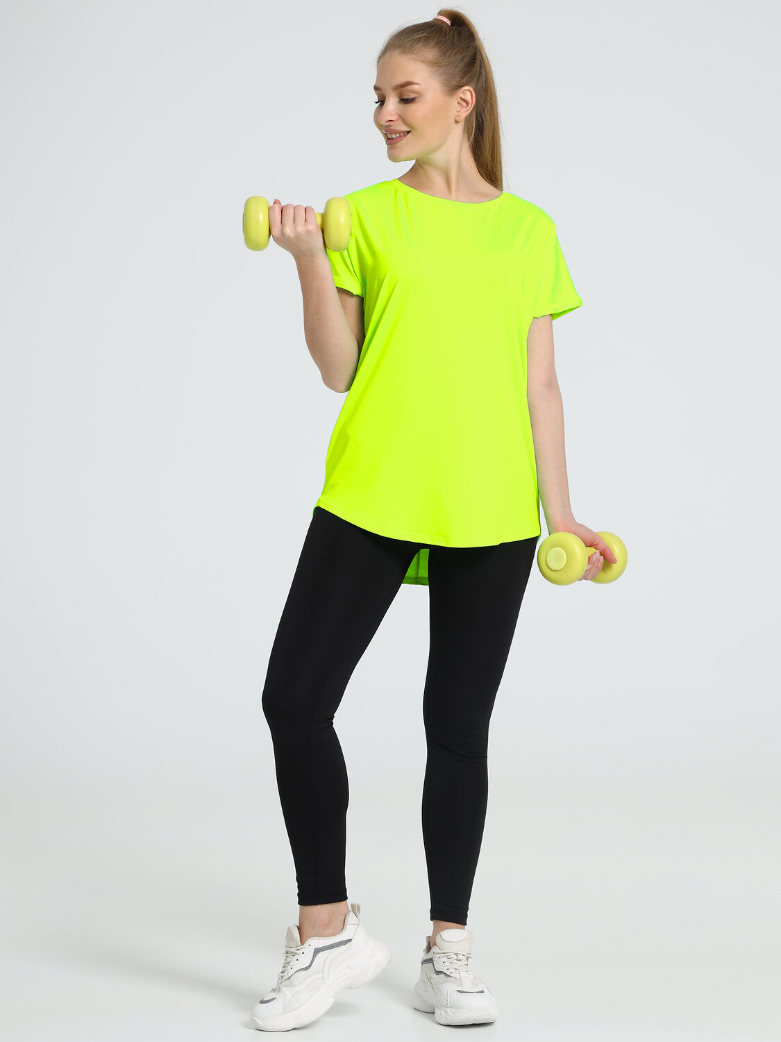 Стильная женская футболка выполнена из высокотехнологичного плотного спортивного трикотажа - отлично пропускает воздух, отводит влагу и не мнется. Изделие свободного силуэта с короткими цельнокроеными рукавами. Лучший выбор для занятий спортом! Уход: только деликатная машинная стирка (руками не стирать!) при температуре 40 градусов, без предварительного замачивания.