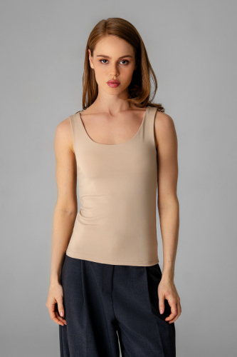 - Вырез горловины округлый, обработан рибаной;