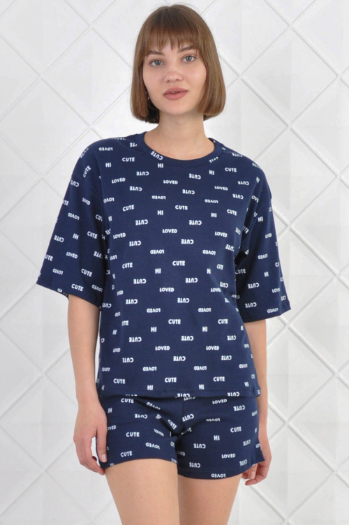 Женский пижамный комплект с шортами. Выполнен из 100% хлопка.