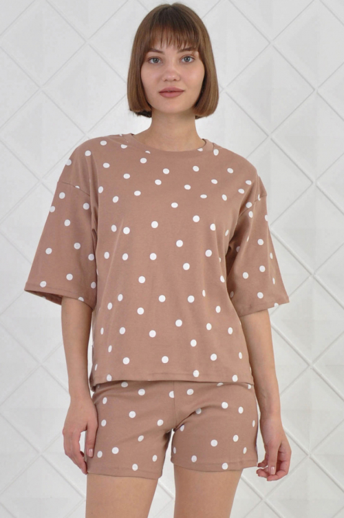 Женский пижамный комплект с шортами.  Выполнен из 100% хлопка.