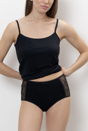Комфортные трусы макси слип с высокой линией талии выполнены из натурального полотна и отличаются удобной посадкой по фигуре. По бокам декорировано кружевными ставками.