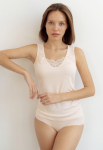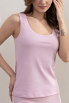 Топ на тонких регулируемых бретелях с V-образной горловиной, изготовлен из лиоцелла в рубчик по современной технологии.