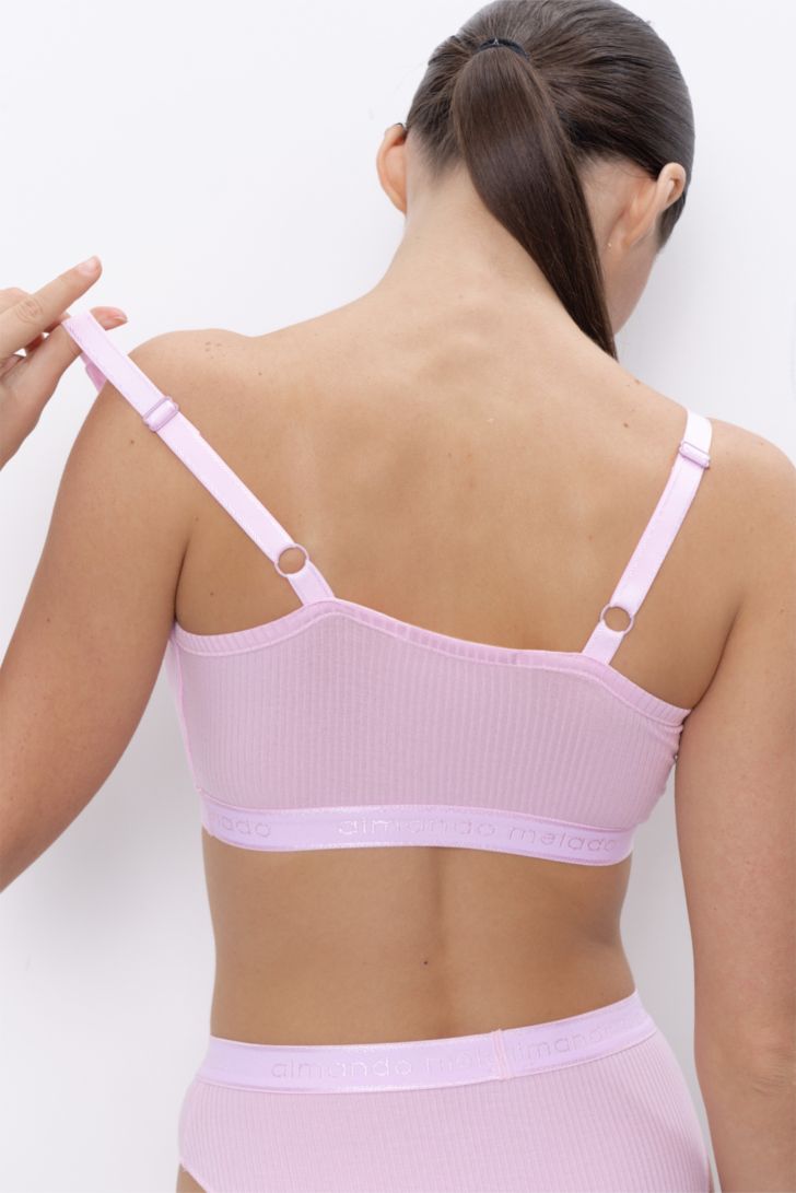 Широкие бретели и резинка по низу топа обеспечивают уверенную поддержку груди.
