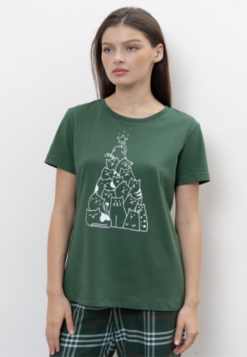 Домашний топ из хлопка с эластаном — это универсальный предмет, который подойдет для любого типа фигуры. Его свободный крой скроет недостатки и подчеркнет достоинства. Его лаконичный дизайн позволяет сочетать его с различными предметами домашнего гардероба, создавая стильные и комфортные образы. Модель в однотонном исполнеии декорирована тематическим принтом.