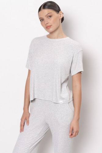 Футболка с коротким рукавом и круглым вырезом горловины. Модель свободного силуэта представлена в трех цветах, декорирована имиджевой нашивкой по низу изделия."