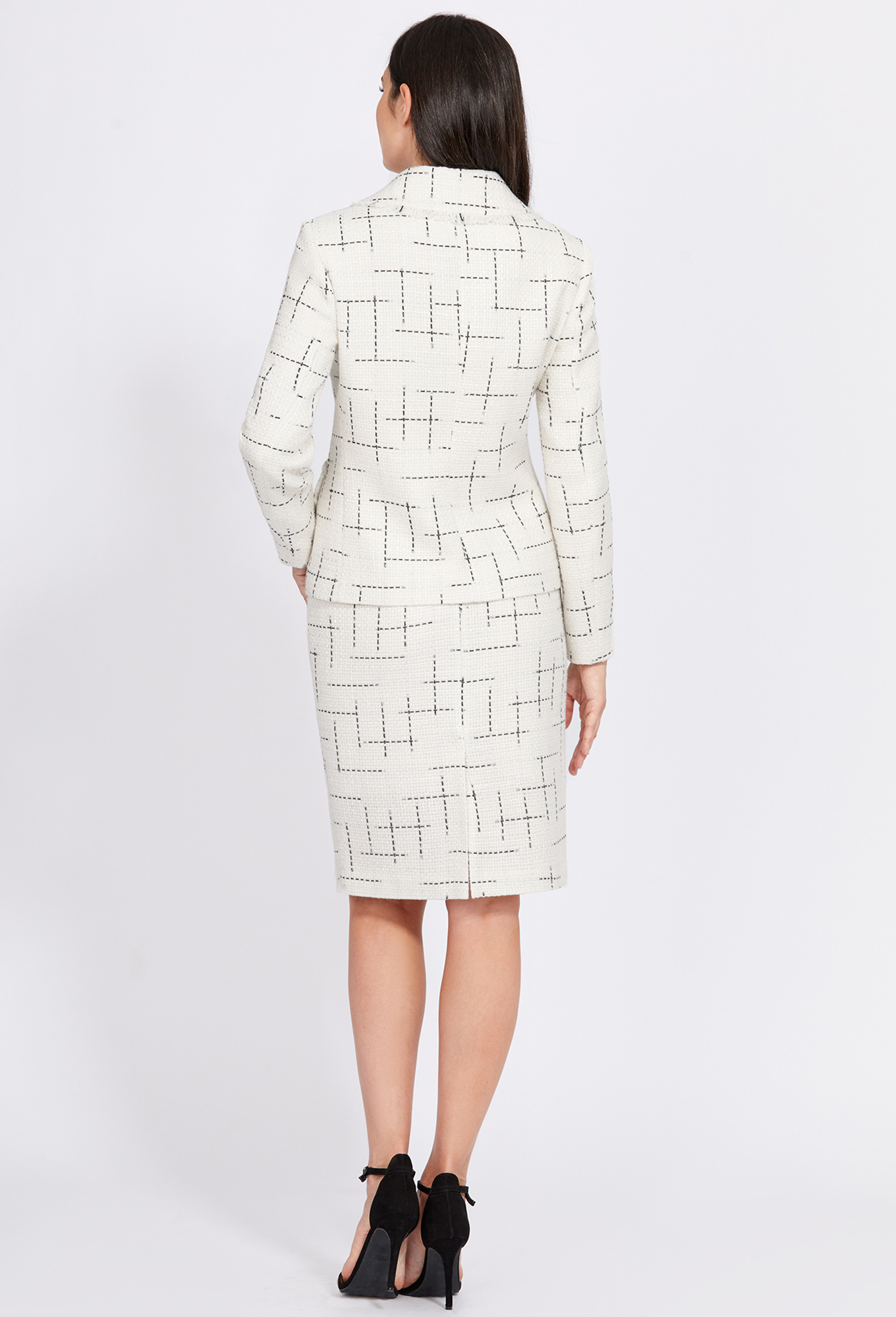 Элегантная юбка-карандаш на обтачке правильной длины, до середины колена. Для пошива модели использовали красивую мягкую ткань в стиле шанель. В среднем шве задней половинки обработаны застёжка на потайную молнию и шлица. На подкладке.