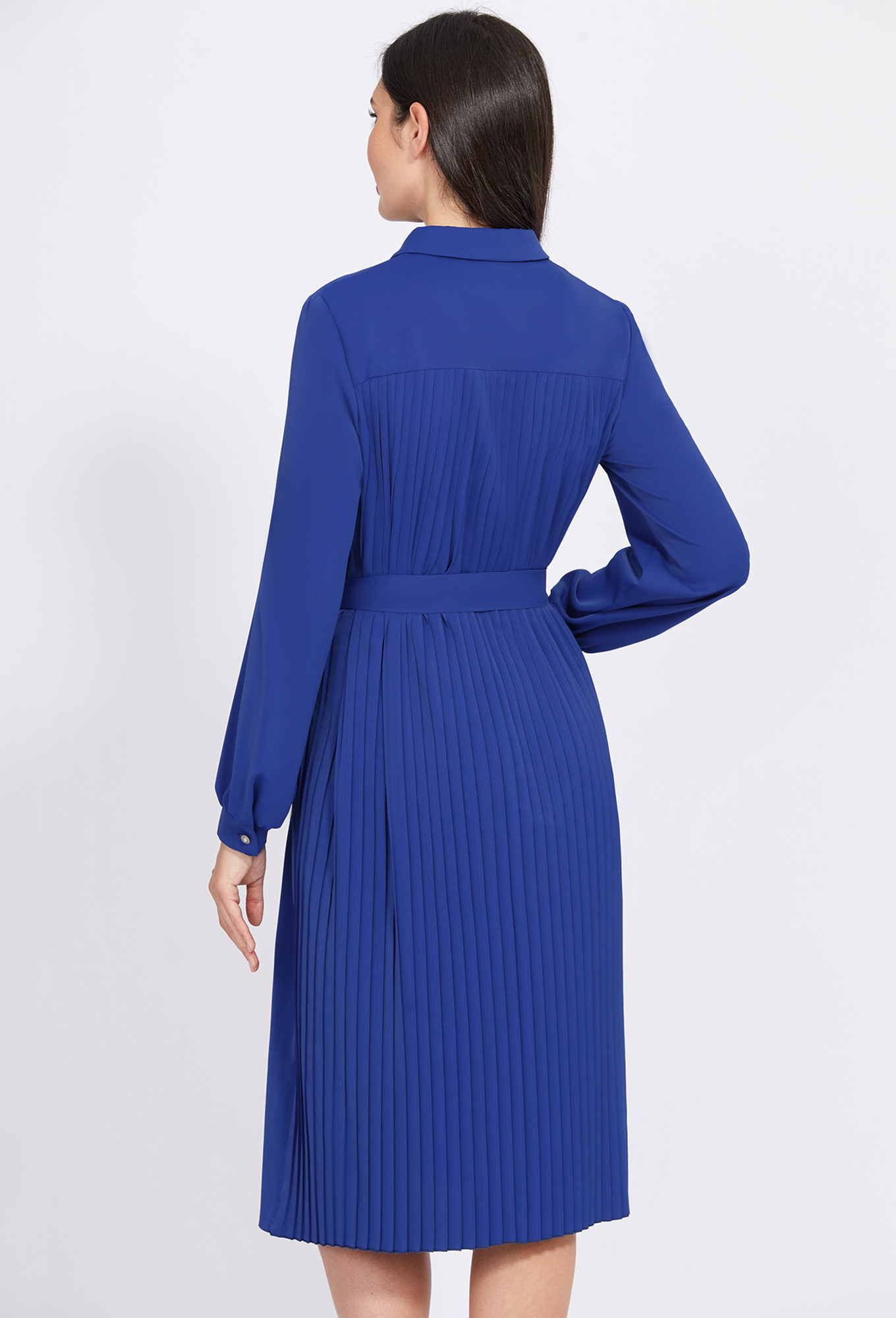 Просто и стильно! Ваш образ будет моментально готов с этим интересным платьем. Модель прямого силуэта выполнили из мягкой, приятной, однотонной ткани и дополнили щелевидным вырезом со сборкой по горловине, отложным воротником с застёжкой на навесную петлю и ювелирную пуговицу, функциональными карманами в боковых швах и деталью со складками по спинке, предоставляющую вам массу свободы и стиля. Рукава втачные, сосборенные по низу манжетами, с застёжкой на ювелирные пуговицы. Для создания приталенного силуэта, предусмотрен интересный пояс в тон, красиво подчёркивающий талию.