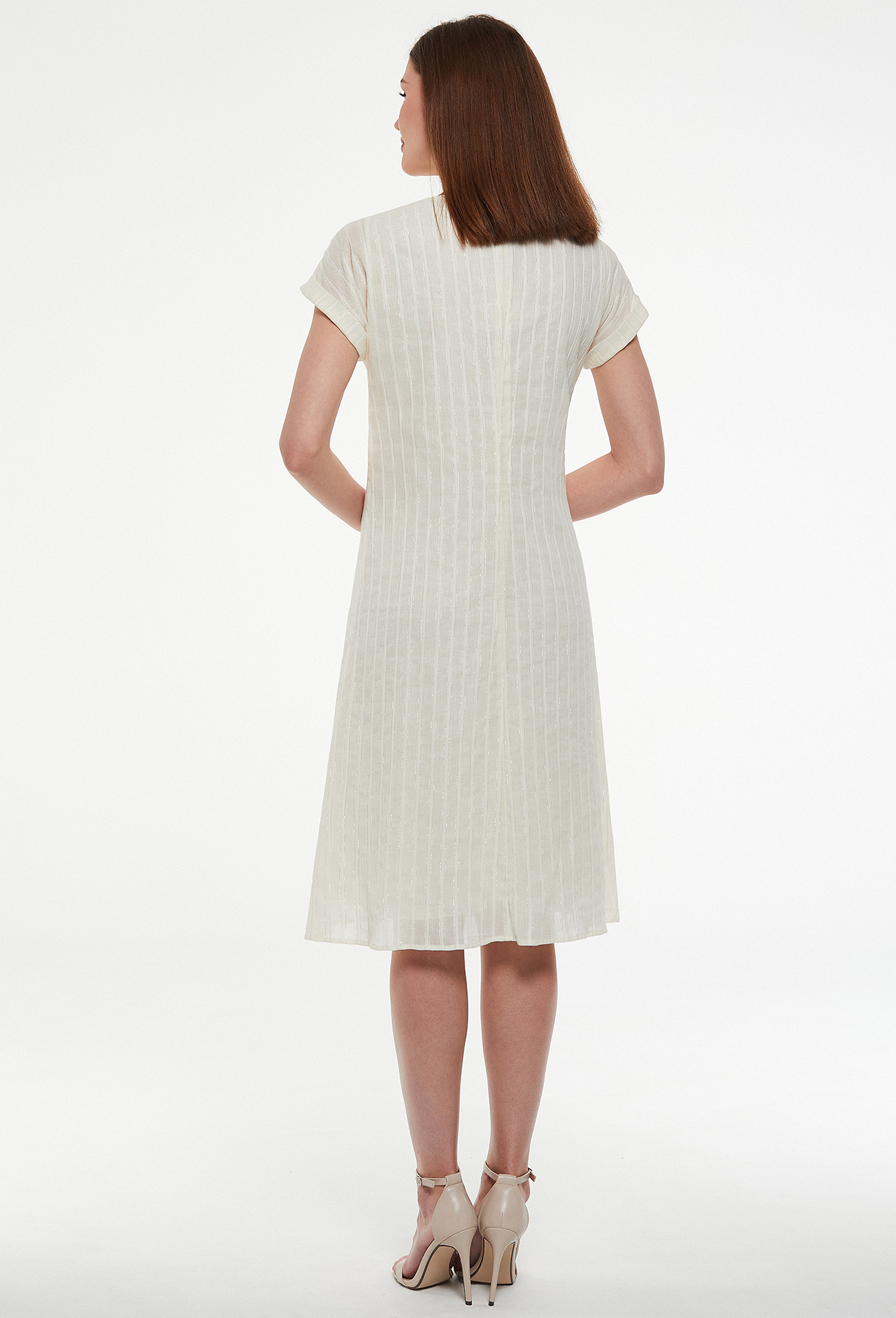 Стильное платье-трапеция с цельнокроенными рукавами с манжетами и округлым вырезом горловины. Платье лёгкое, свободное. Данная модель станет незаменимым вариантом, который сочетает в себе стиль и комфорт одновременно.