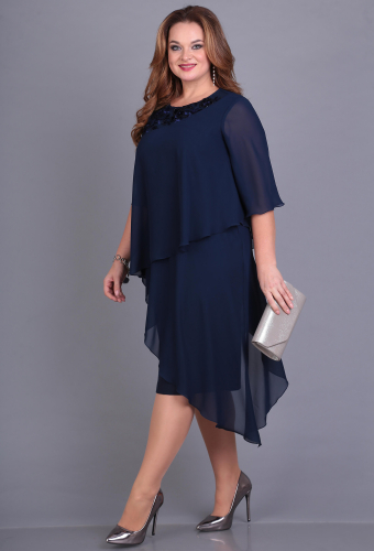 - платье А-образного силуэта с V-образным вырезом горловины по переду и овальным по спинке
