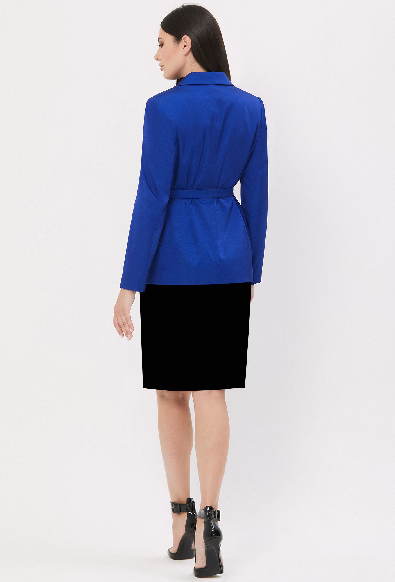 Классический жакет полуприлегающего силуэта будет уместен и в наряде для офиса, и в повседневном образе. Однобортной жакет с отложным воротником с лацканами. Перед с глубоким вырезом, с застежкой на две петли-пуговицы с двумя карманами с клапанами и рамками. Рукава втачные двухшовные. Снизить градус формальности помогает пояс из основной ткани с металлической пряжкой-карабин. На подкладке.