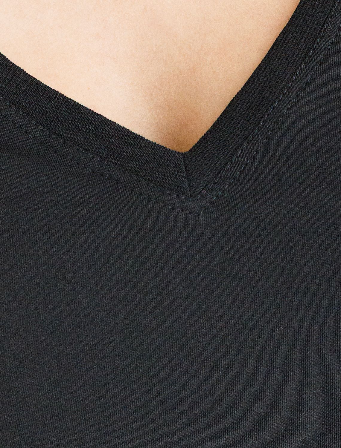 Базовая футболка черного цвета с V-образным вырезом выполнена из премиального хлопка. Добавление эластана в состав изделия способствует формоустойчивости. Футболка выполнена из качественного натурального материала, отлично сидит по фигуре и подходит для отдыха и работы. Преимущество этой модели - V-образный вырез, который подчеркивает линию шеи и придает внешнему виду элегантность. Такой фасон гармонично вписывается как в классические, так и в современные гардеробы. Декольте делает изделие более женственным и визуально вытягивает силуэт, создавая ощущение легкости. Такая футболка средней длины и классического кроя идеально подойдет под любую одежду. Модель доступна в больших размерах, чтобы каждая женщина могла подчеркнуть свою индивидуальность.