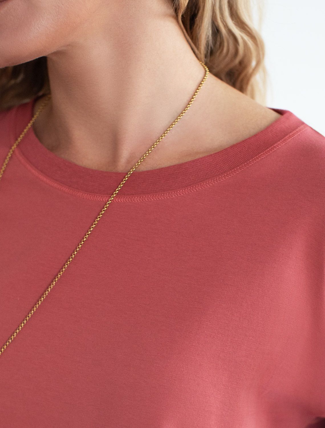 Свободный лонгслив темно-кораллового цвета с длинным рукавом выполнен из премиального хлопка с добавлением эластана, что обеспечивает комфорт и приятные тактильные ощущения. Однотонная расцветка и круглый ворот создают стильный и универсальный образ, который подойдет для повседневного использования. Спущенная линия плеча придает лонгу современный и расслабленный силуэт. Такой лонгслив идеально подходит для весеннего и летнего сезона благодаря легкой и дышащей ткани. Большие размеры позволяют выбрать оптимальный вариант на любую фигуру, обеспечивая свободу движений и удобство на каждый день. Этот комфортный лонгслив станет отличной базой в гардеробе, сочетаясь с различными стилями одежды и создавая простой, но эффектный образ.