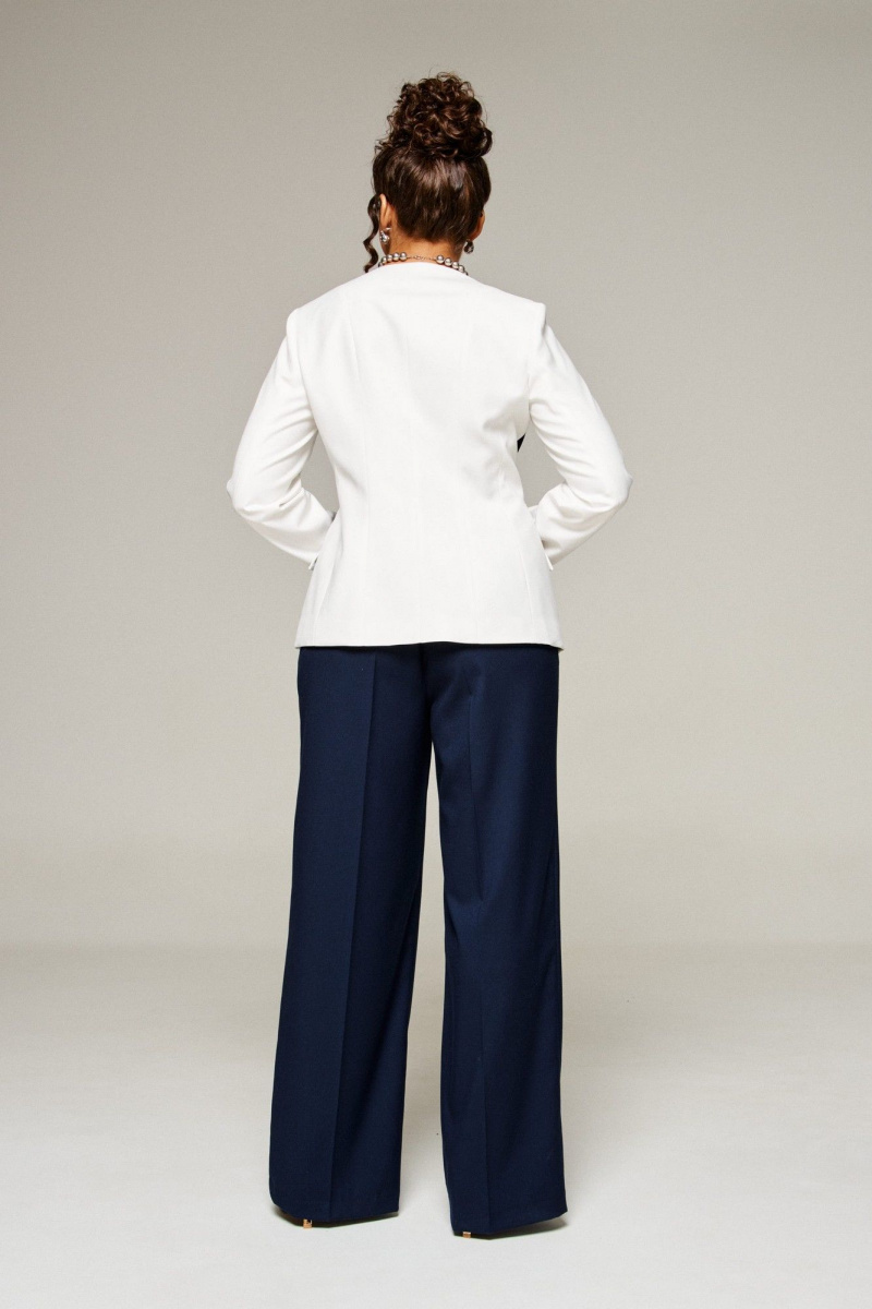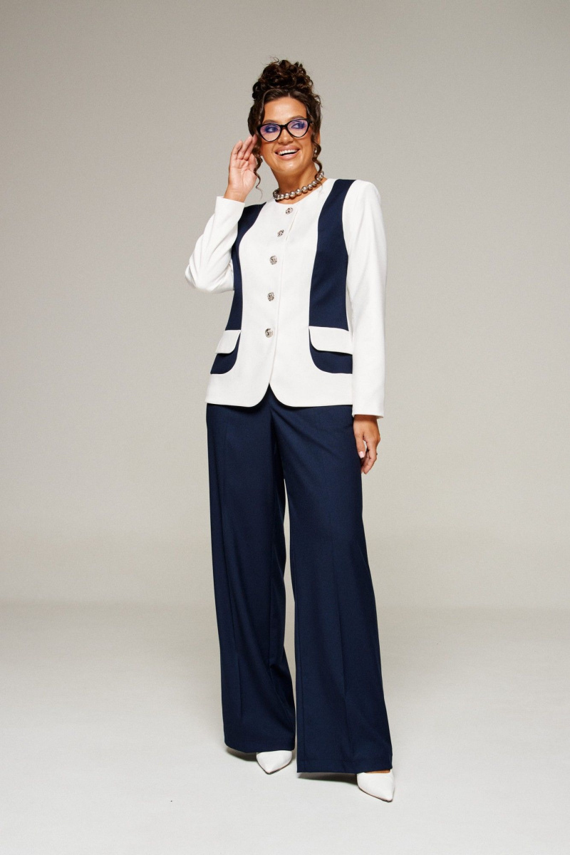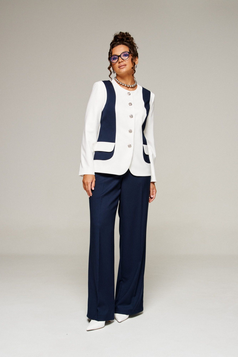 Костюм женский 2-ух предметный: жакет и брюки в деловом стиле. Выполнен из костюмного полотна с нежной фактурой в контрастном сочетании актуальных оттенков.