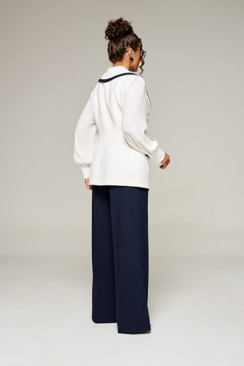 Передняя часть блузы цельнокроеная с вытачками от бокового шва.