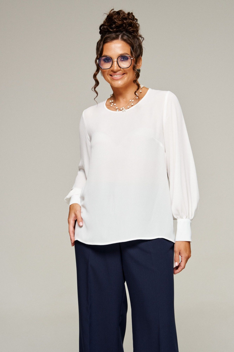 Блузка прямого, свободного силуэта, выполнена из шифонового полотна.