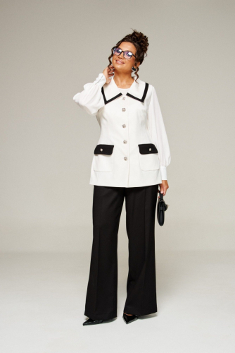 Комплект женский 3-ёх предметный: жилет, брюки, блузка в деловом стиле. Выполнен из костюмно-смесового полотна с нежной, гладко-бархатистой фактурой, приятной на ощупь и матовой поверхностью в контрастном сочетании актуальных оттенков.