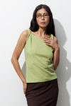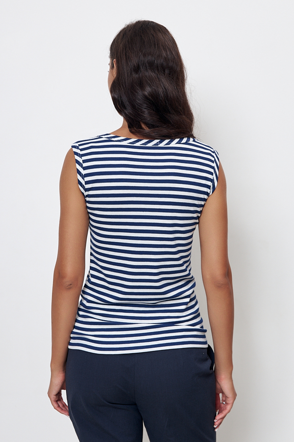 Топ из эластичного полотна полуприлегающего силуэта. Линия горловины и линия проймы окантованы эластичной бейкой.