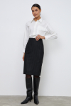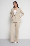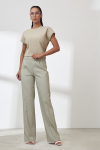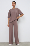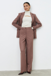 Брюки прямого силуэта из костюмной ткани. Пояс притачной с эластичной резиной.