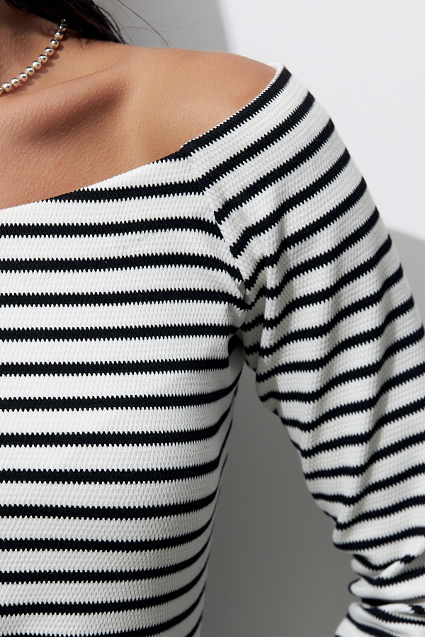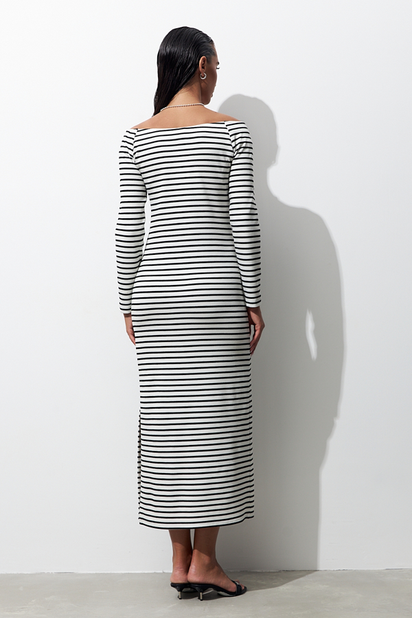 Платье из эластичного полотна прилегающего силуэта с разрезом в боковом шве. Длинный рукав-реглан. Линия плеча и линия горловины с эластичной резиной.