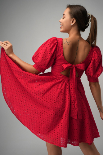 – глубокий вырез на спине с бантом — утончённая деталь;