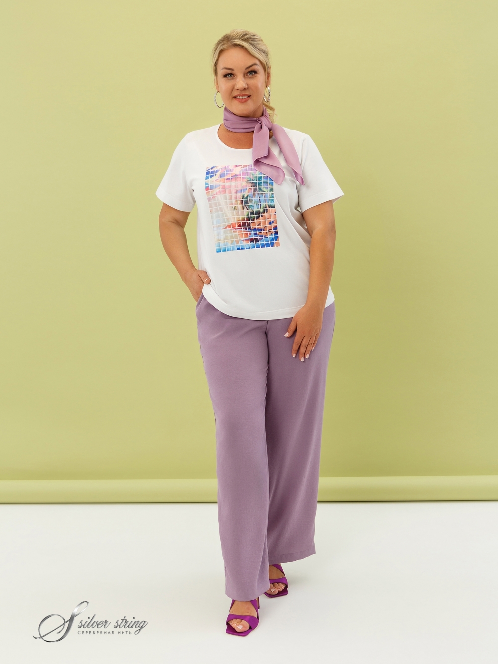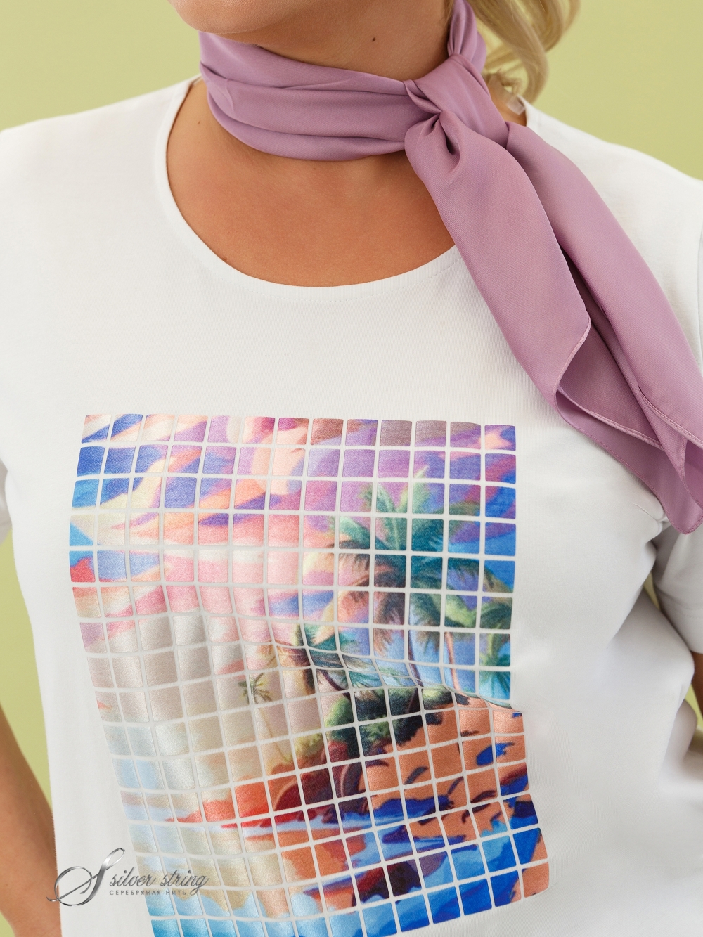 Современная футболка прямого силуэта выполнена из качественного, натурального трикотажного полотна. Модель с втачным рукавом длиной до локтя и круглой линией горловины. Футболка - самый демократичный вид одежды в мире, её носят люди всех возрастов, национальностей и достатка. Она входит в топ-5 самых актуальных вещей летнего гардероба. Эффектный принт на полочке претендует на роль яркого акцента в образе. Футболка лучше всех вписывается в расслабленную атмосферу долгожданного отпуска. И представить лето без футболки уже не возможно.