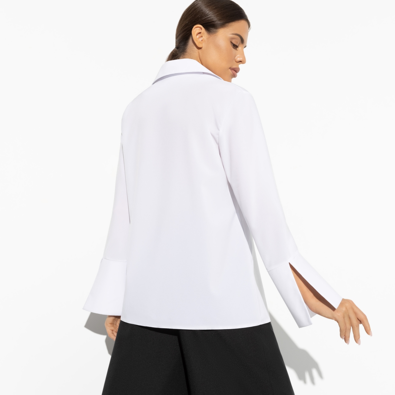 Как говорили старожилы Уолл-стрит, босс не тот, кто пришел на работу в белой рубашке, а тот, у кого она осталась белой после бизнес-ланча. Амбассадоры CHARUTTI отличаются аккуратностью, правда же?! Рубашка в классическом стиле. Имитация линии пуговиц. Слегка расклешенный манжет с разрезами. Свободный крой, хорошо смотрится на любом типе фигуры.