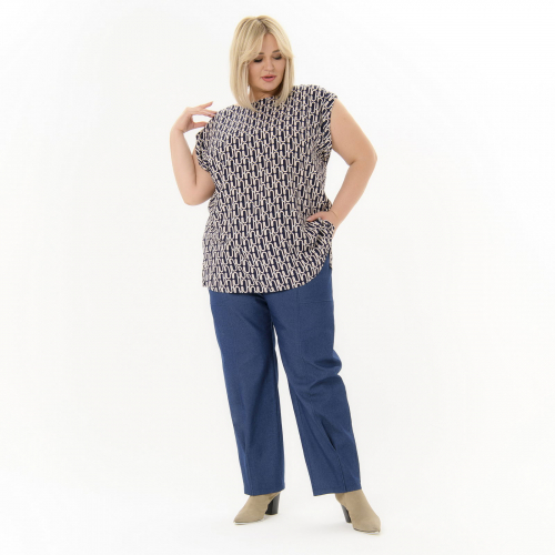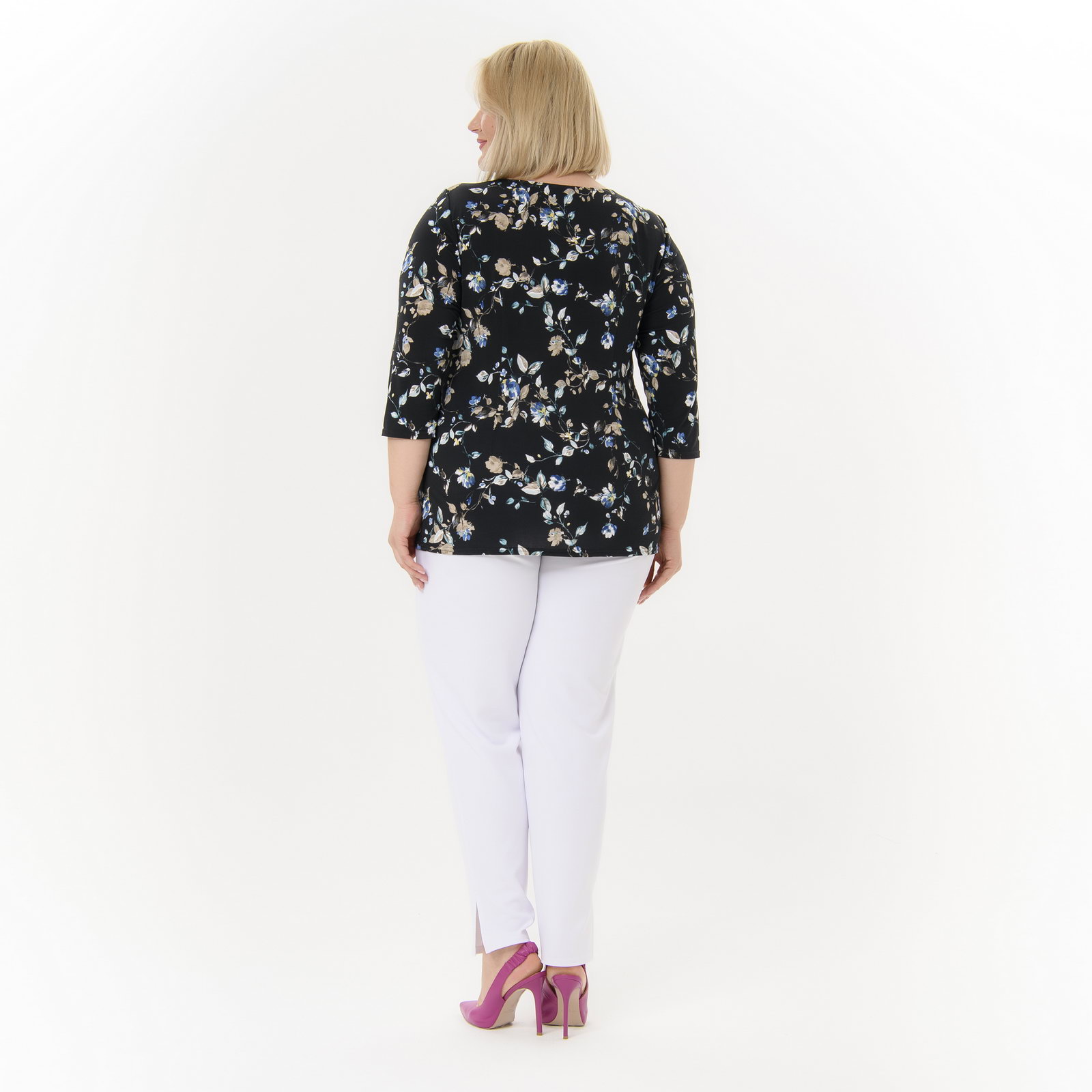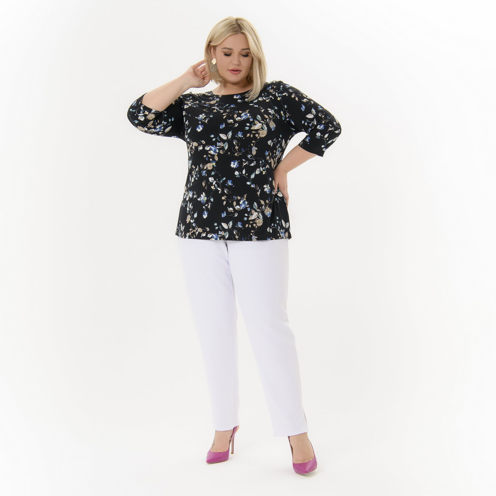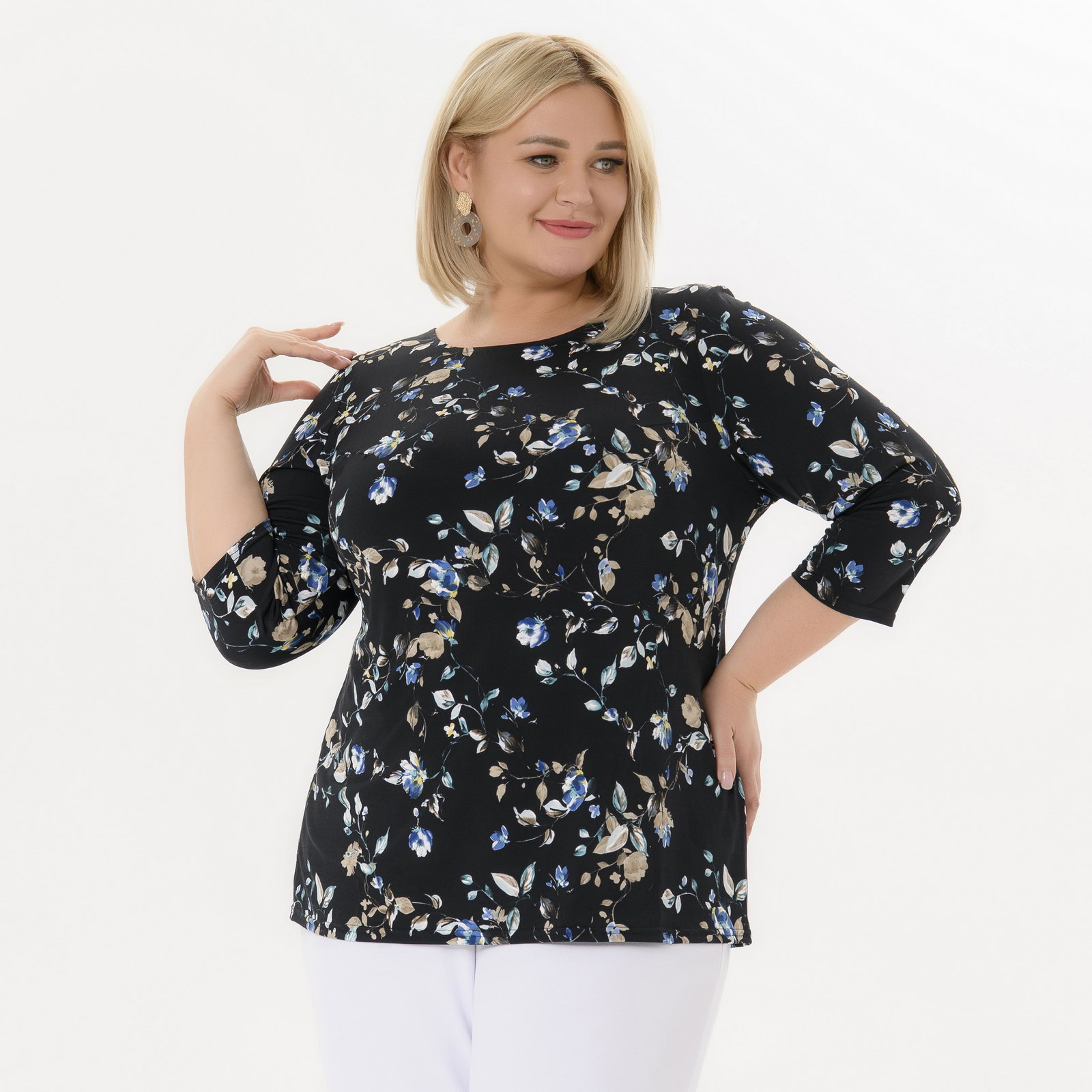 Базовая блуза из принтованного трикотажа "масло". Силуэт полуприлегающий. Вырез горловины округлый. Рукав 3/4.
