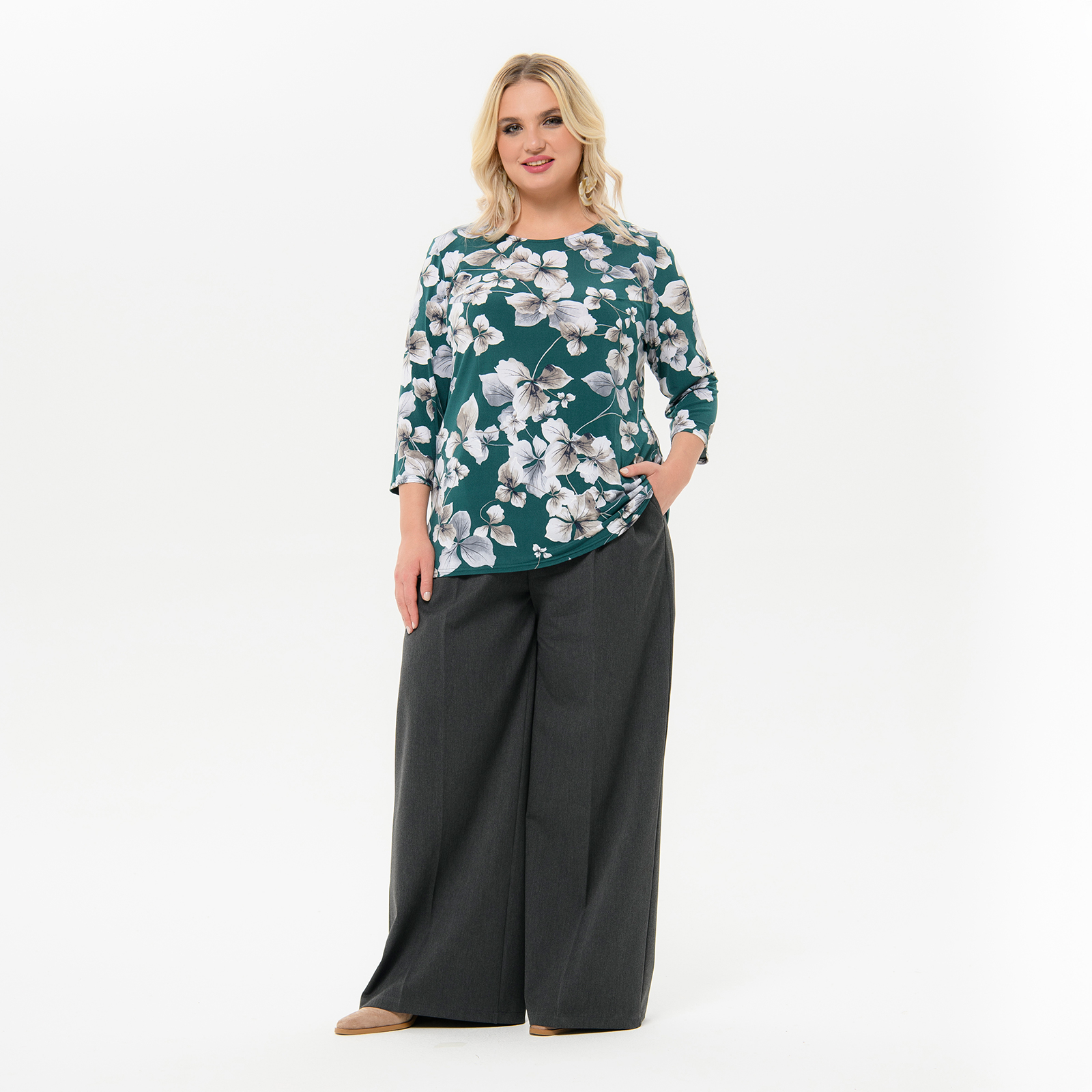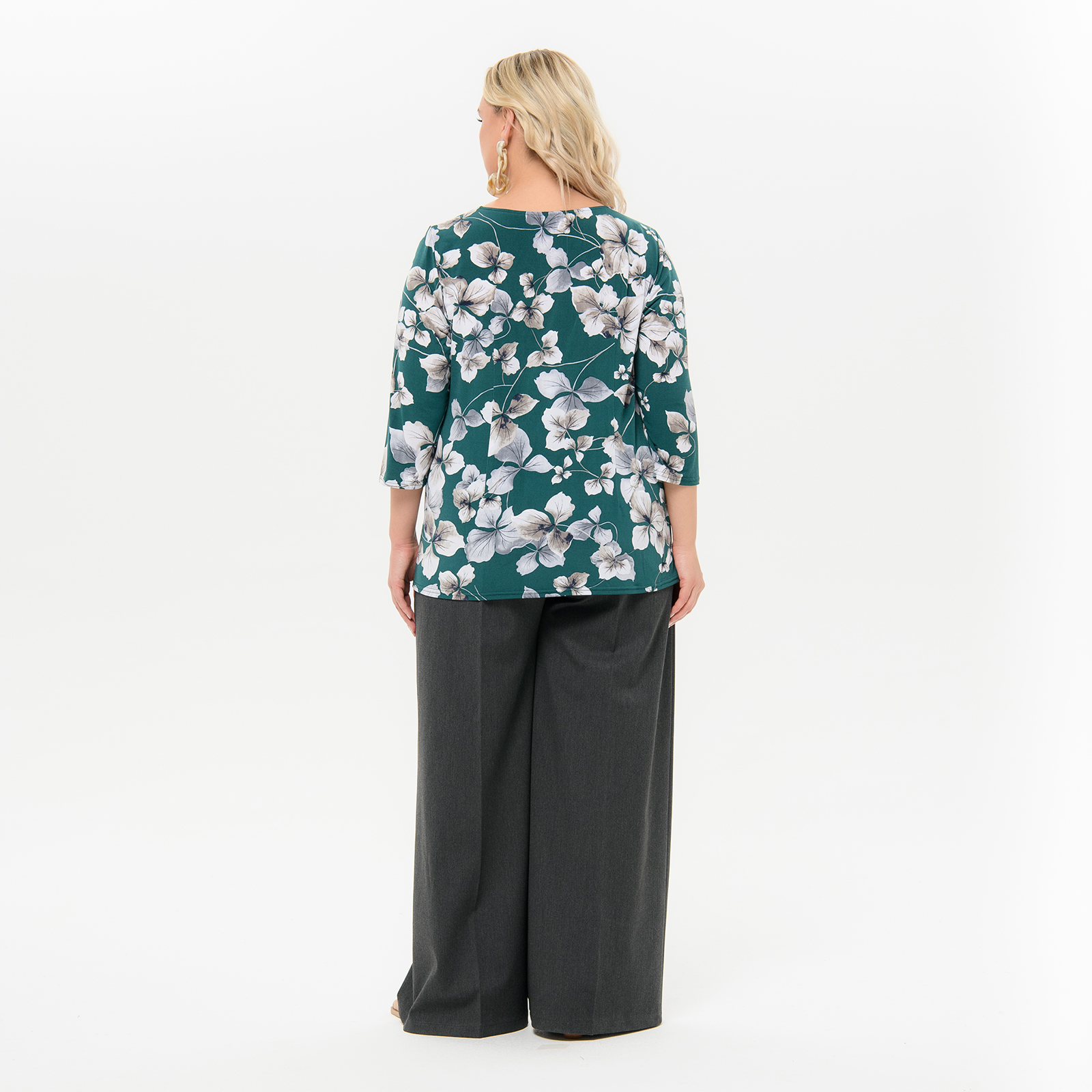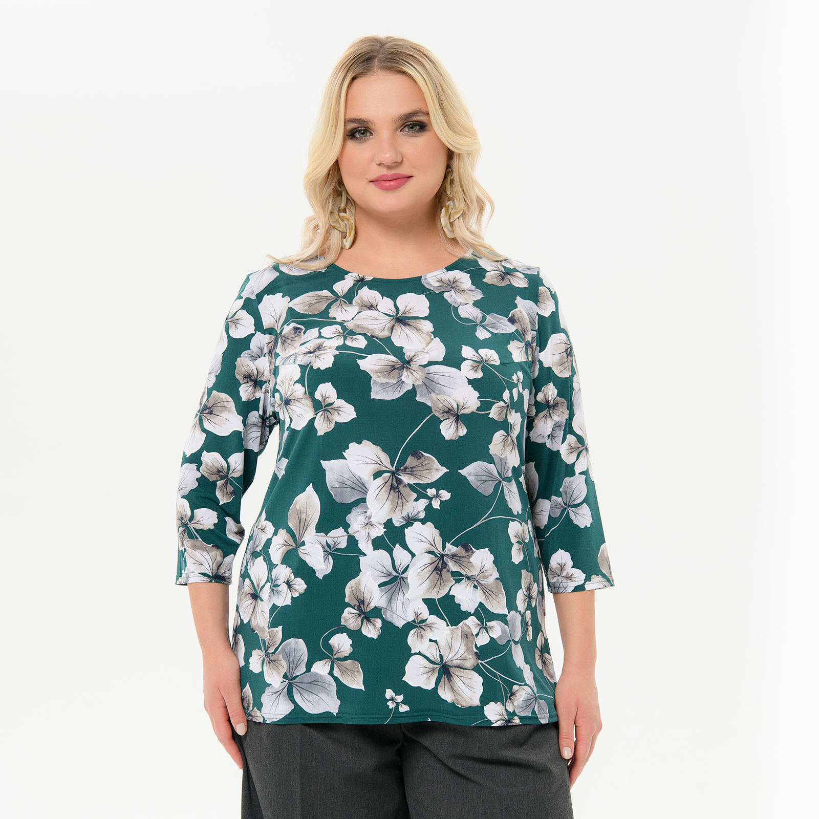 Базовая блуза из принтованного трикотажа "масло". Силуэт полуприлегающий. Вырез горловины округлый. Рукав 3/4.