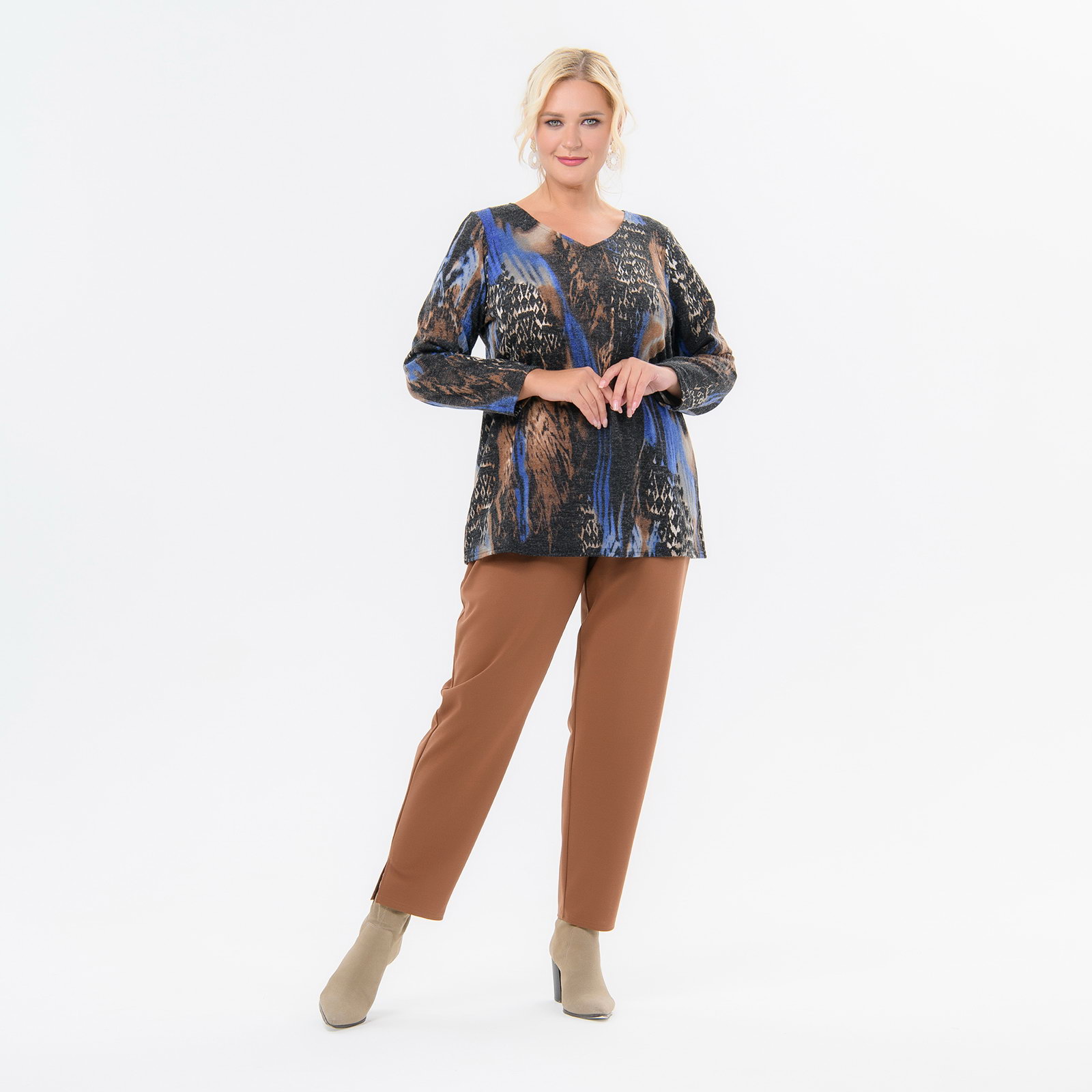 Блуза прямого силуэта из джерси-ангора. По грловине V-вырез, рукав длинный.