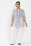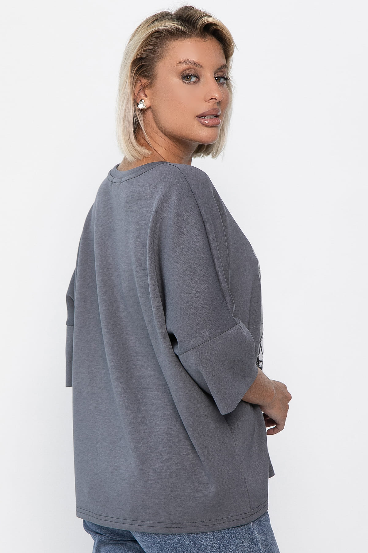 Женская блузка с оригинальным дизайном сочетает в себе стильный внешний вид и исключительный комфорт. Яркий и оригинальный принт, украшенный стразами и металлизированным напылением, добавляет уникальности. Выполненная из приятного трикотажа, она идеально подходит для повседневных образов или активного образа жизни. Станет отличным акцентом в вашем гардеробе, добавляя нотки стиля в любой случай!