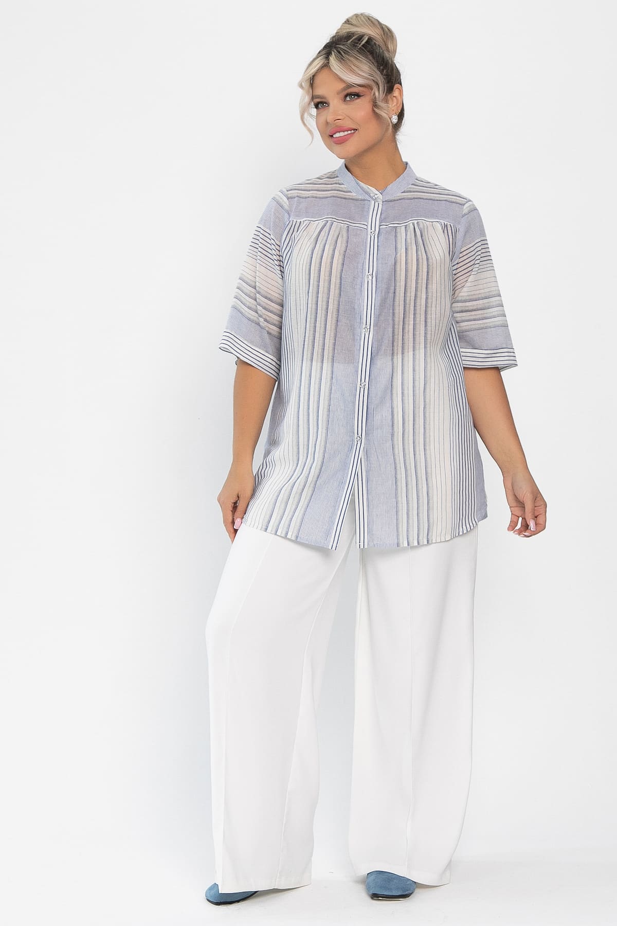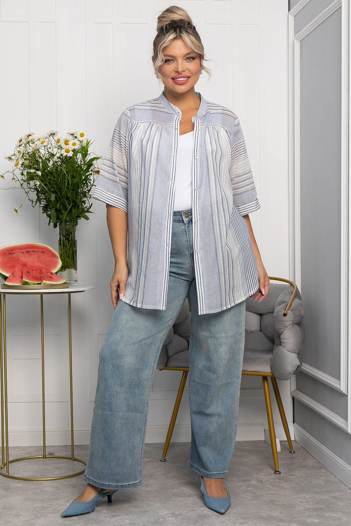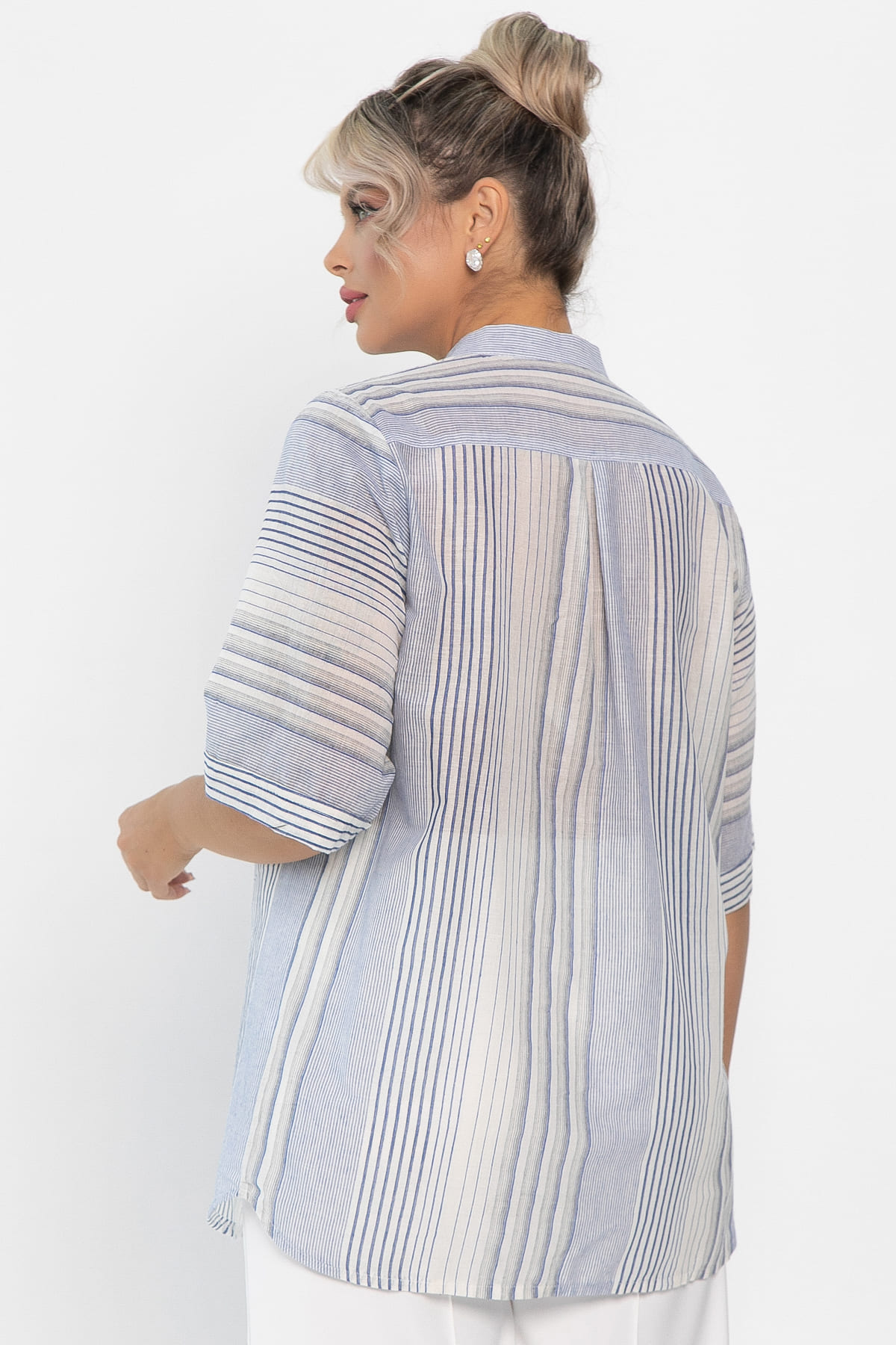 Блузка свободного кроя, изготовленная из хлопковой ткани с ярким принтом в виде полос, станет стильным дополнением к вашему гардеробу. Благодаря воротнику-стойке, она выглядит особенно элегантно. Эта блузка станет идеальным дополнением к вашему образу, если вы наденете её поверх топа или футболки. Она отлично подойдёт для прогулки или встречи с подругами. Блузка создаст гармоничный и завершённый образ, при этом сохраняя ощущение свободы и комфорта в течение всего дня.