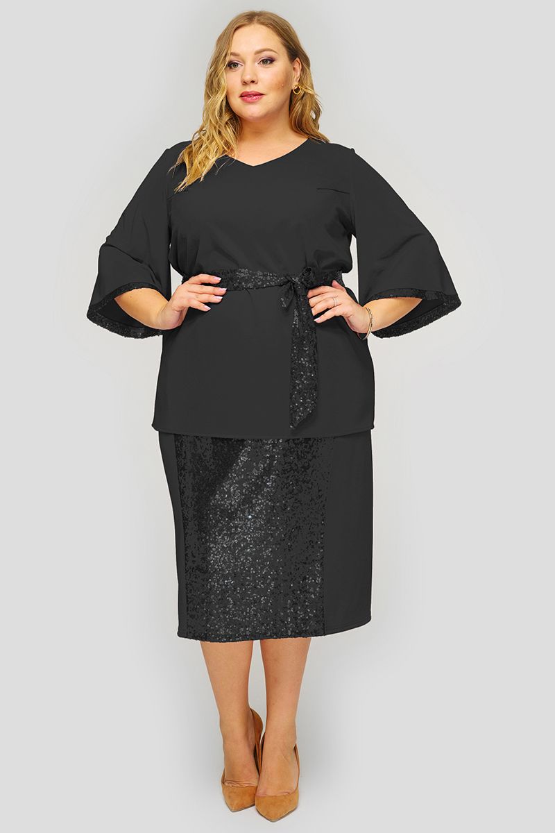 Блуза из черного крепа, отделка - пайетки