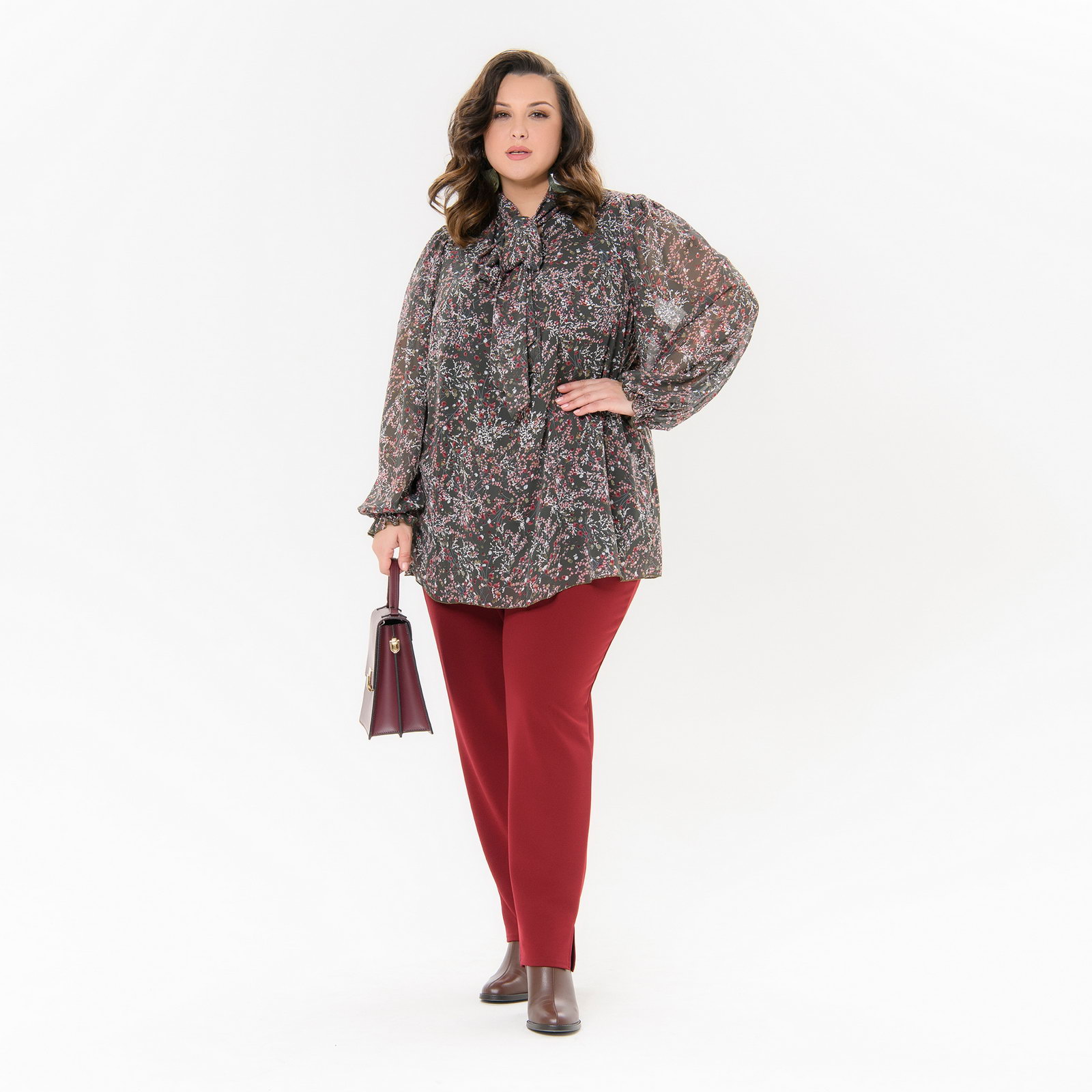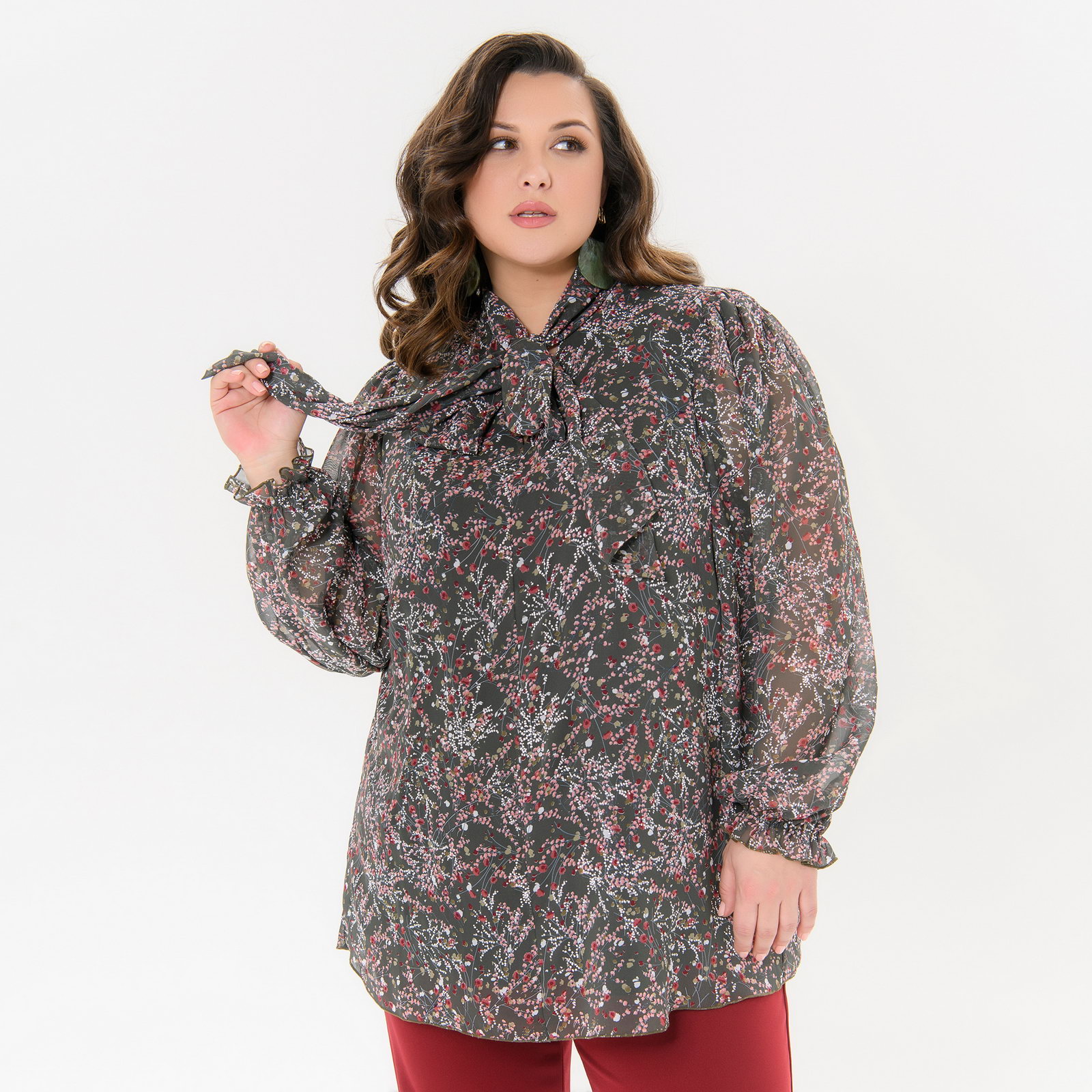 Блуза из шифона с воротником "аскот", шифон травяной *
