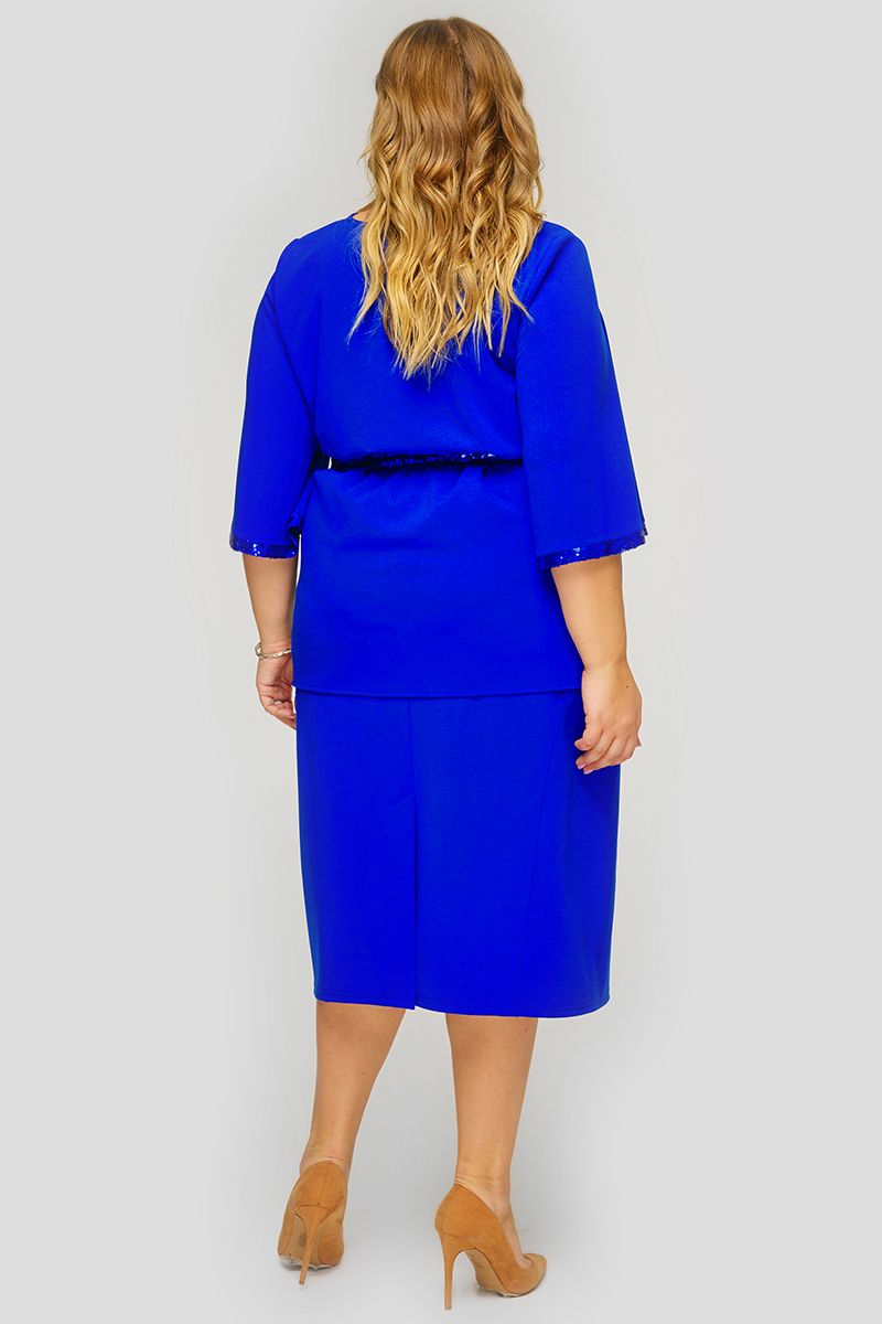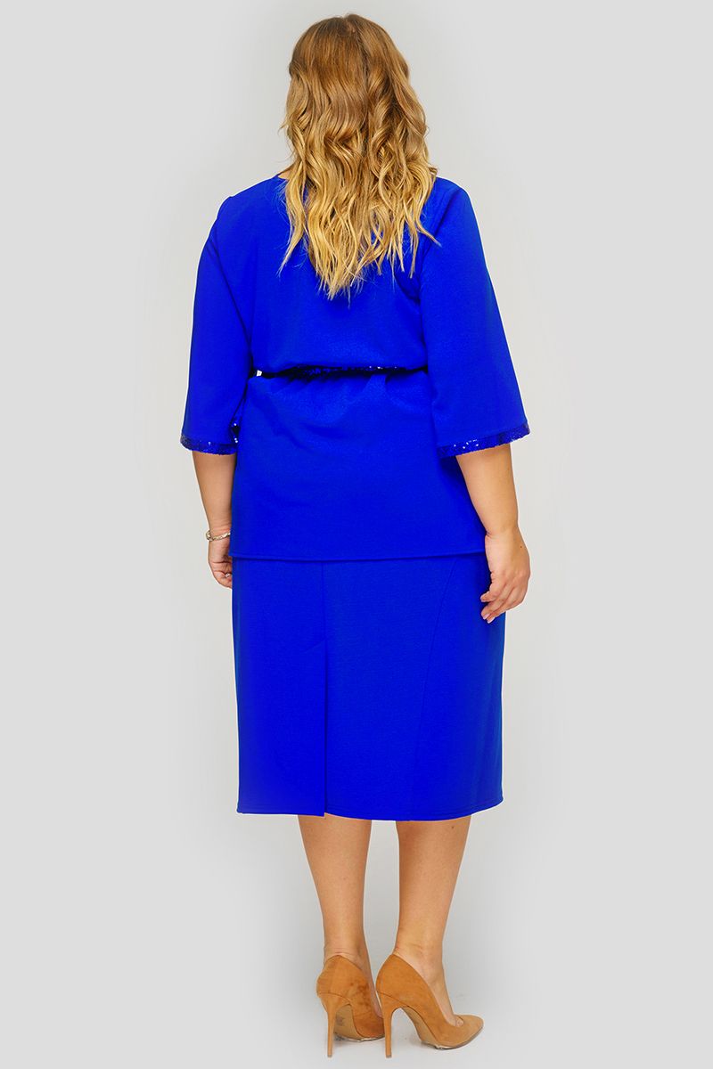 Блуза из василькового крепа, отделка - пайетки