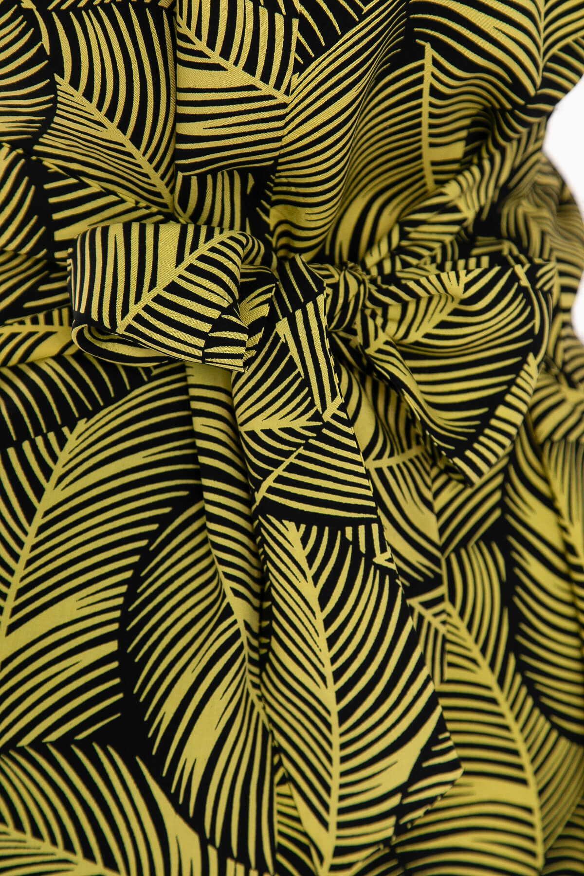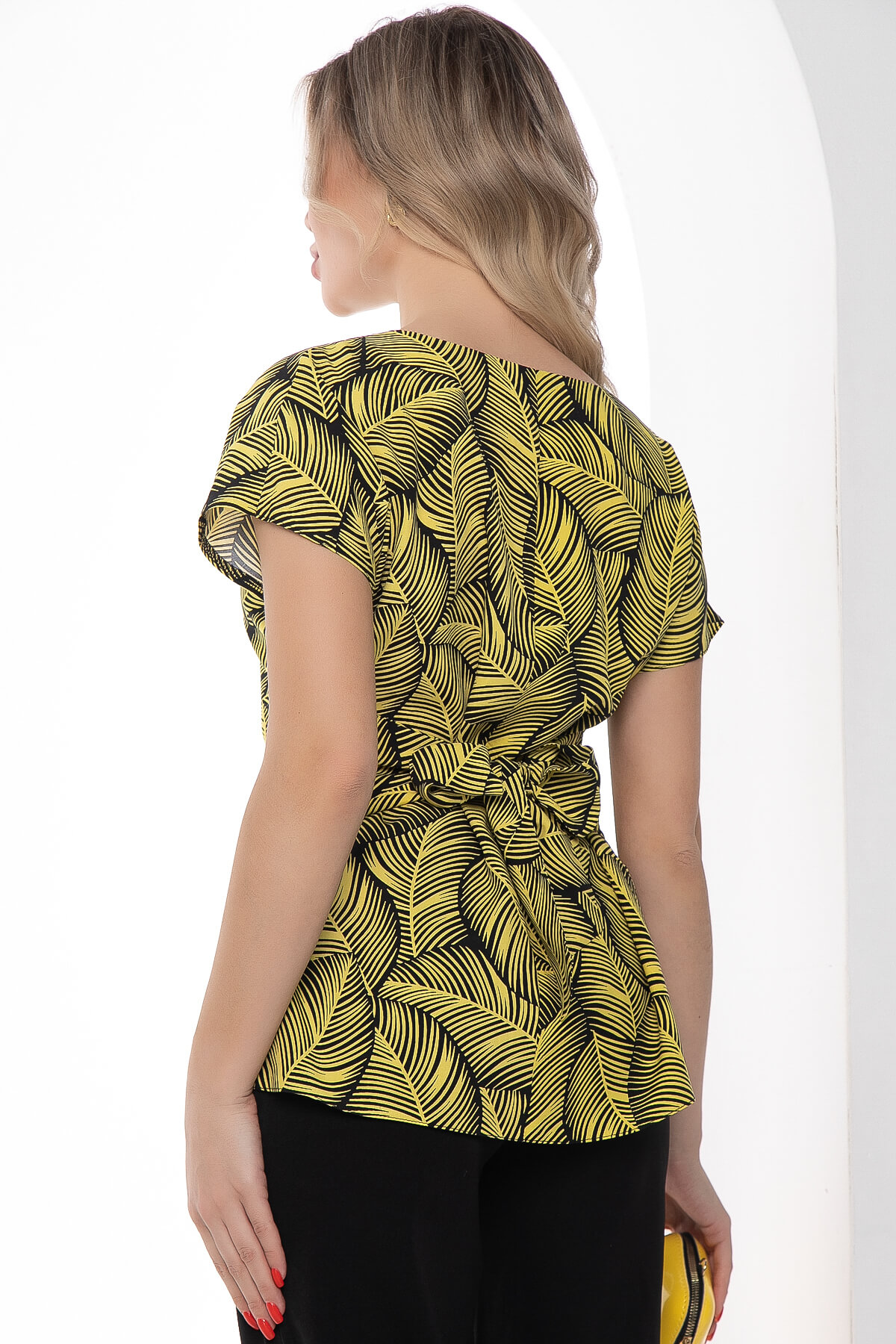 Стильная блуза, которая позволит подчеркнуть все тонкости фигуры. Изделие будет отлично смотреться с брюками или с джинсами. Рукав укороченный, цельнокроенный. Пояс из основной ткани вшит в боковые швы изделия: его можно завязать по передней части либо по задней части изделия.
