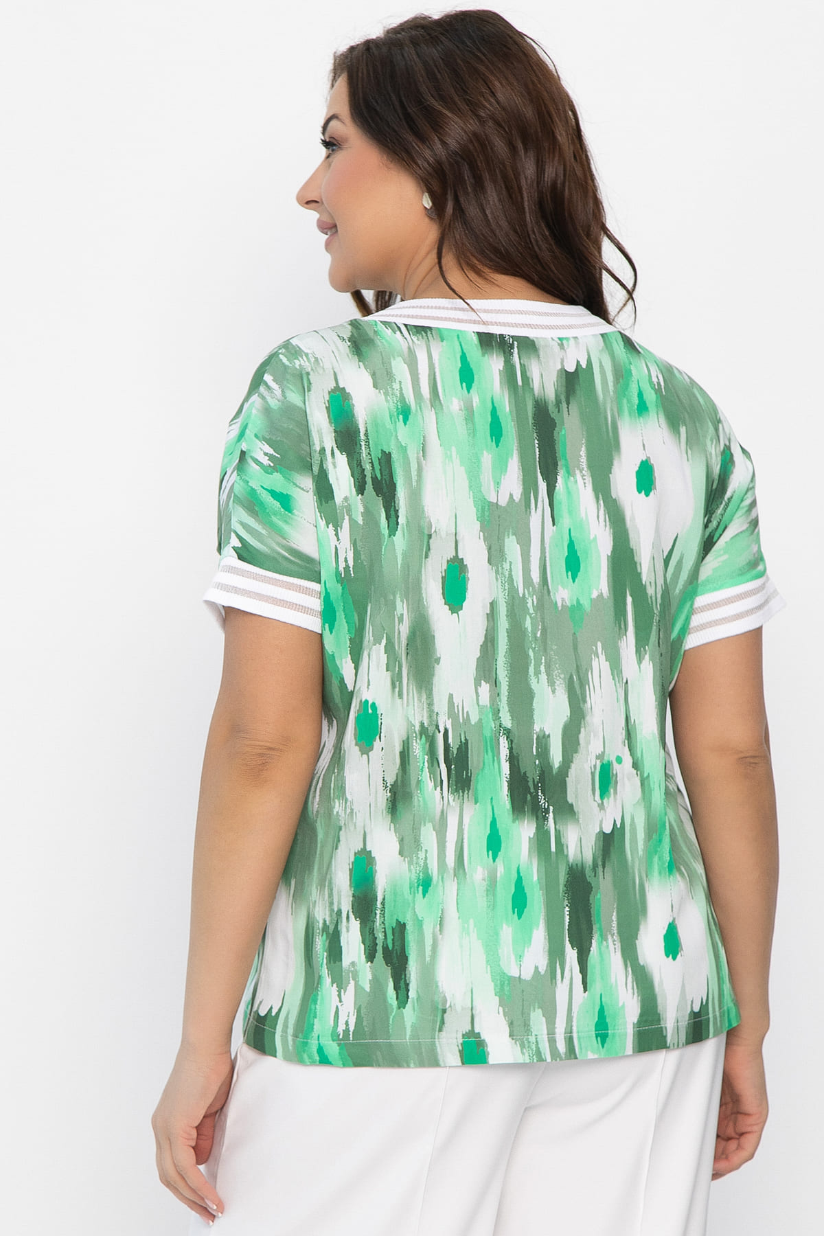 Женская блуза в зелёном цвете отличается стильным дизайном и выполнена из штапельного материала. Свободный крой и удобная посадка подчеркивают женственность образа. Горловина и рукава на подвязе, что добавляют модели особый шарм. Обновите свой гардероб с помощью этой стильной и практичной вещи, которая сочетает в себе удобство и элегантность.