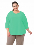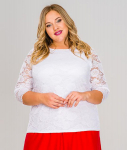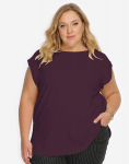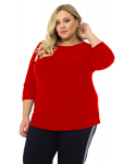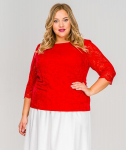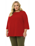 Однотонная красная блуза с короткими рукавами и круглым вырезом горловины.