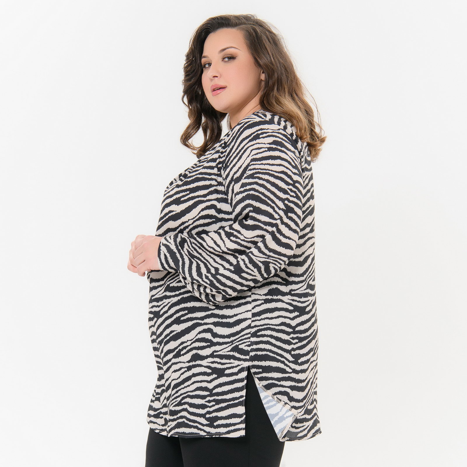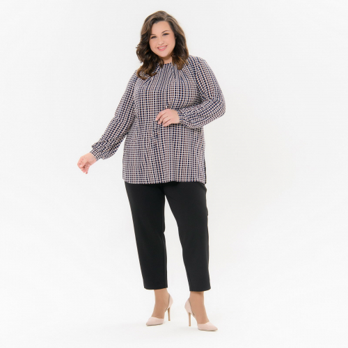 Блуза из струящейся плательной ткни. Силуэт прямой. По вырезу горловины переда заложены мягкие складочки, со стороны горловины спинки блуза застегивается на пуговку.