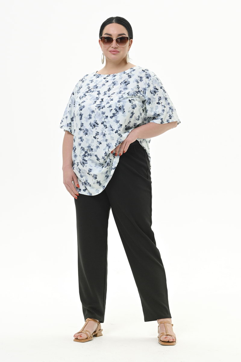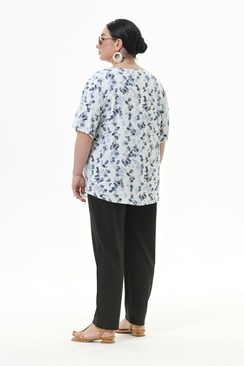Блуза прямого силуэта, вискоза, принт "цветочная дымка"
