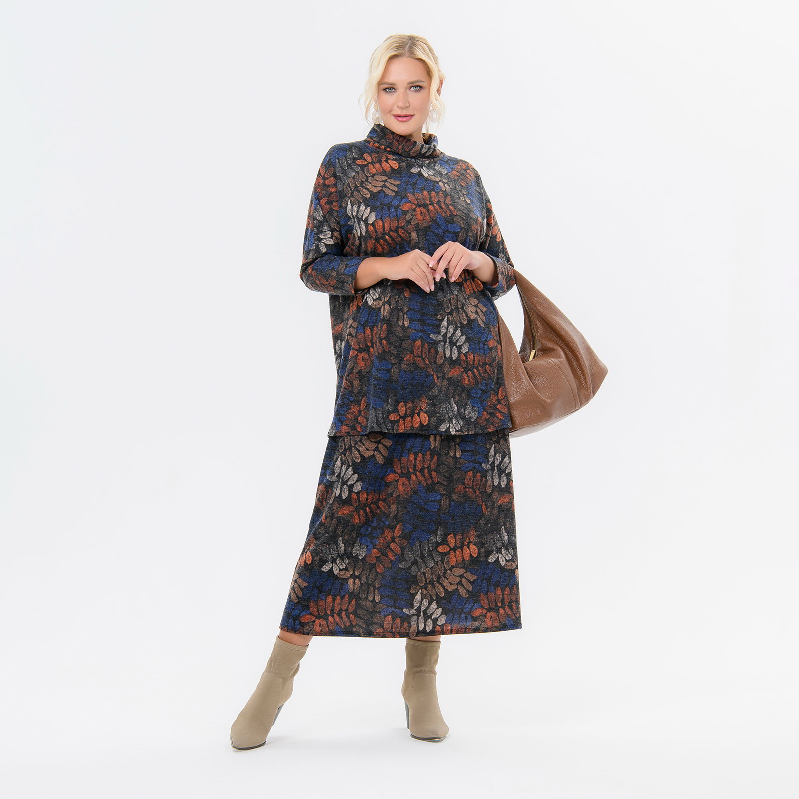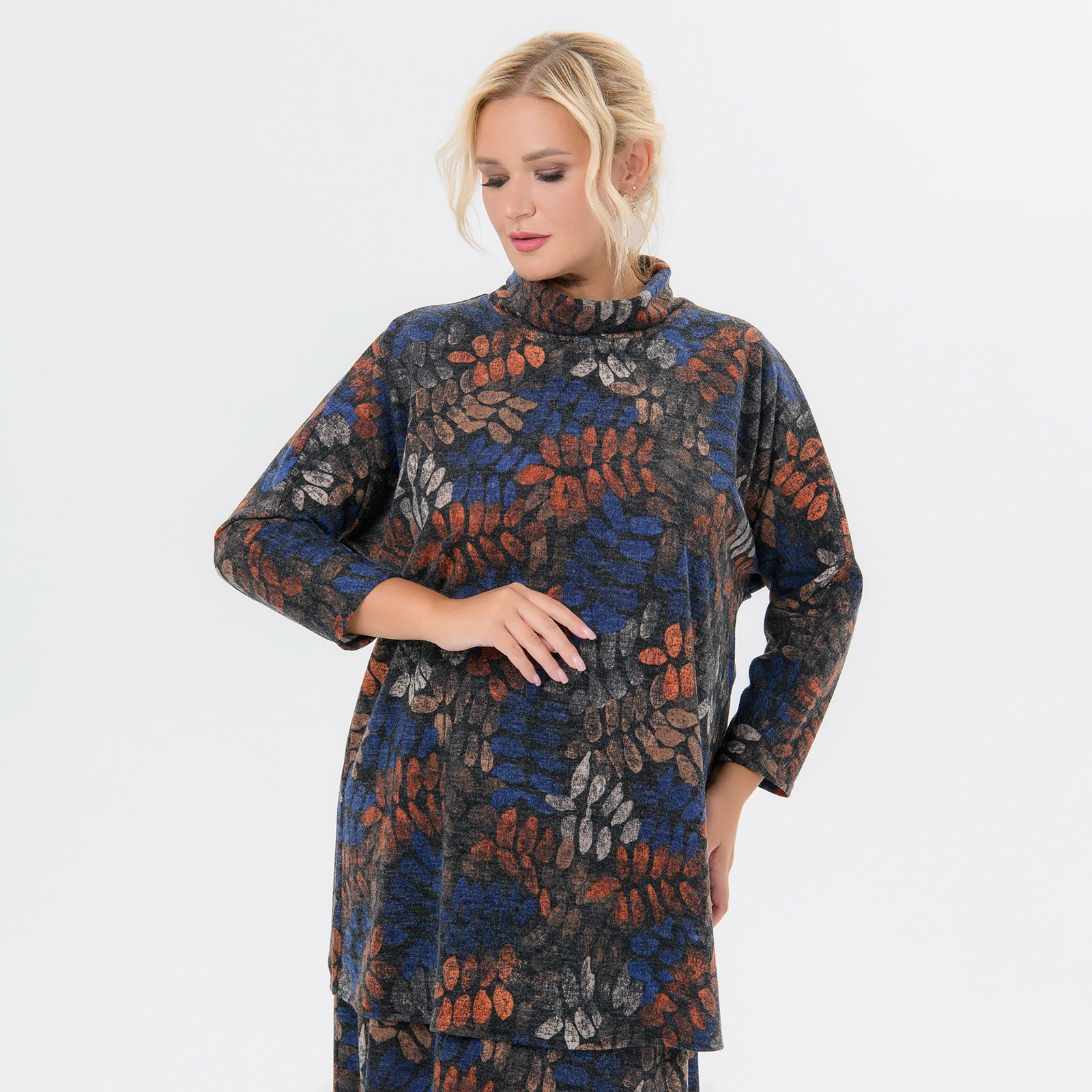 Блуза с цельнокроеным рукавом из ангоры, принт "краски осени"