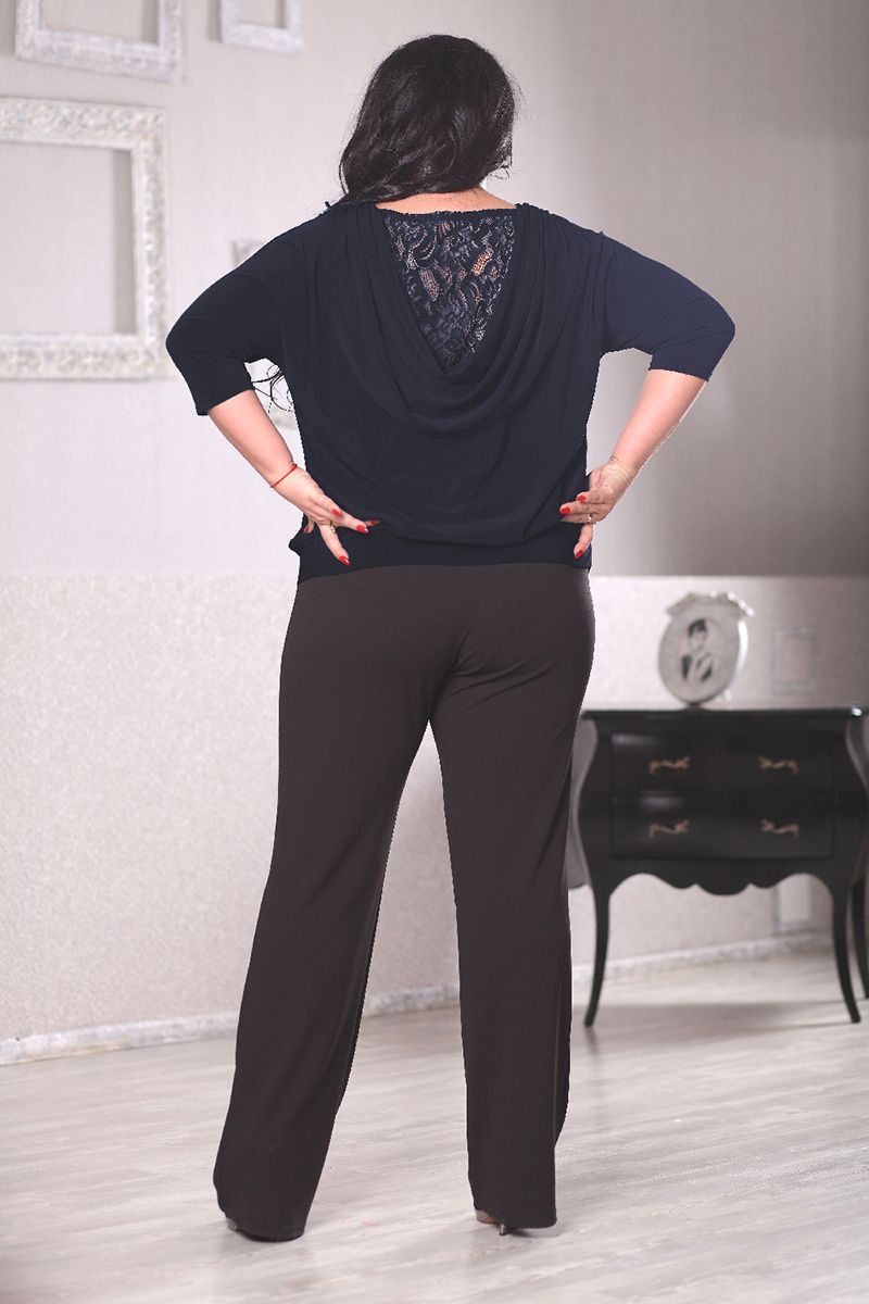 Романтичная блуза с цельнокроеными рукавами. Вырез по спинке, оформленный  кружевом, обрамляет ниспадающая драпировка.