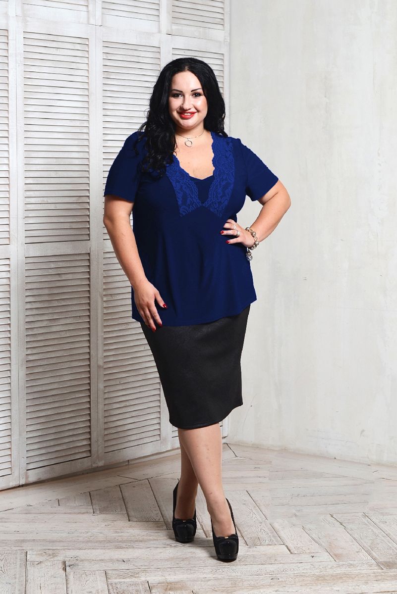 Блуза с кружевом синяя